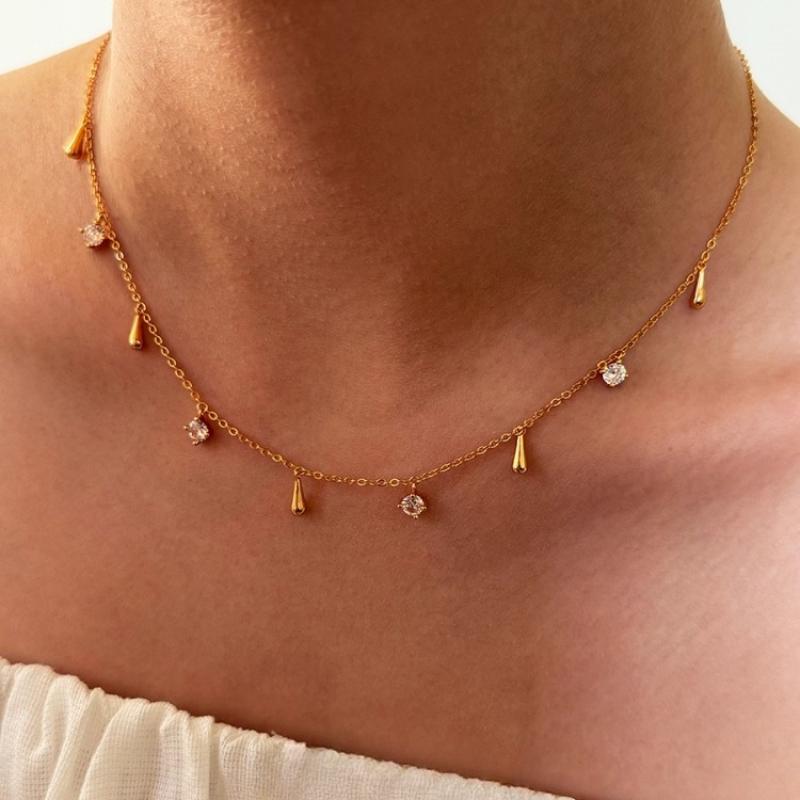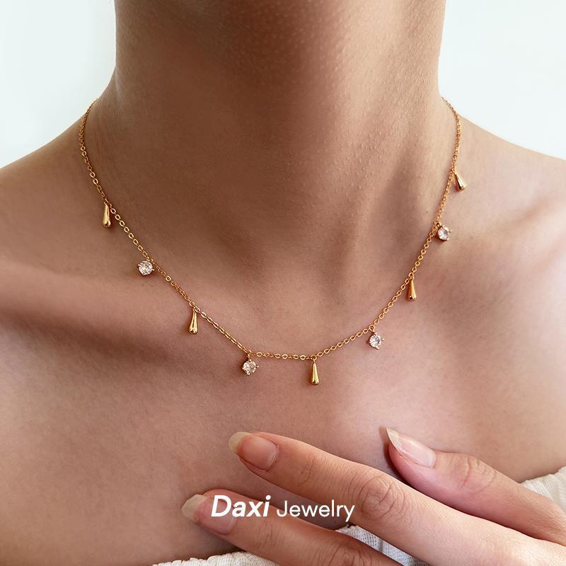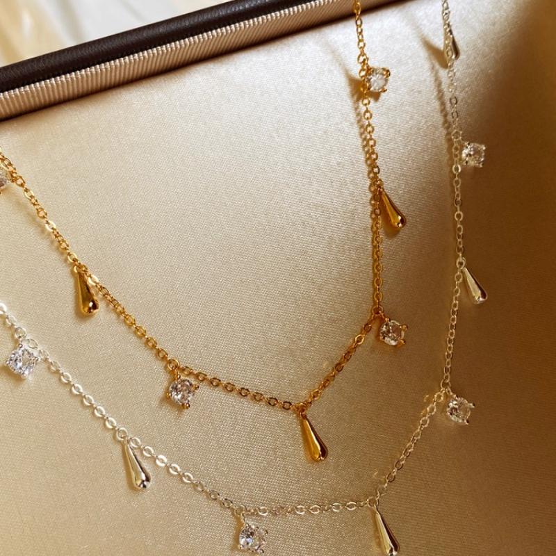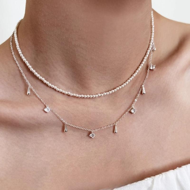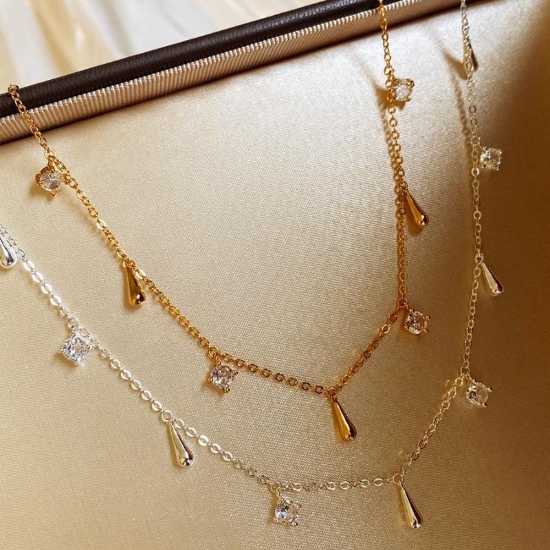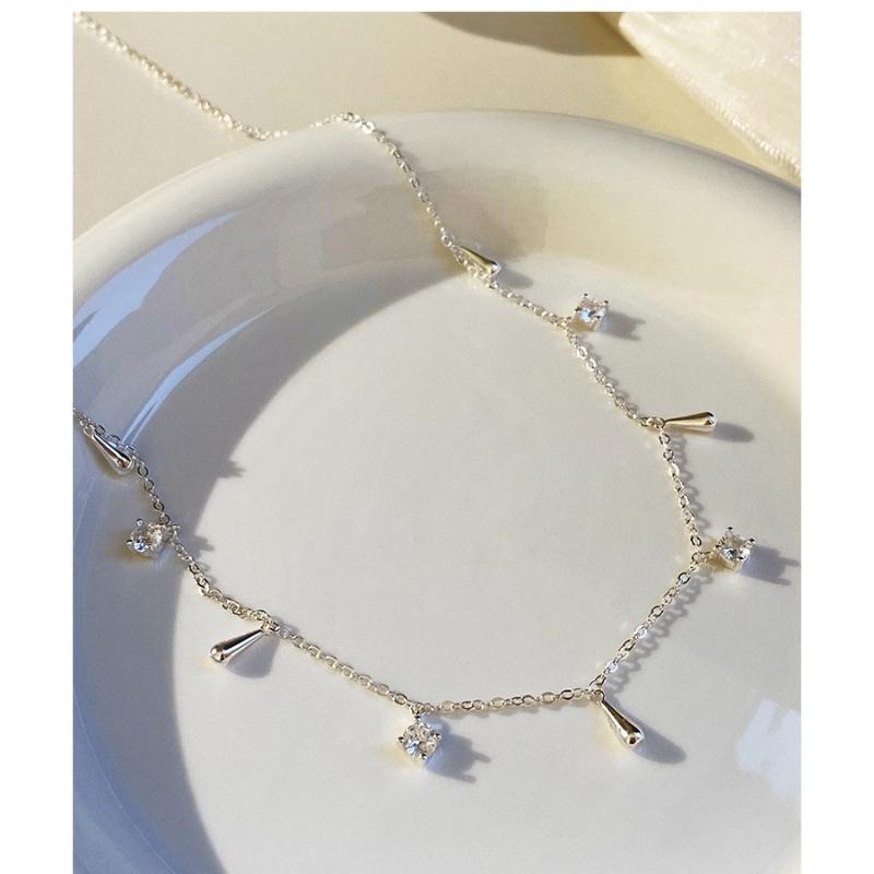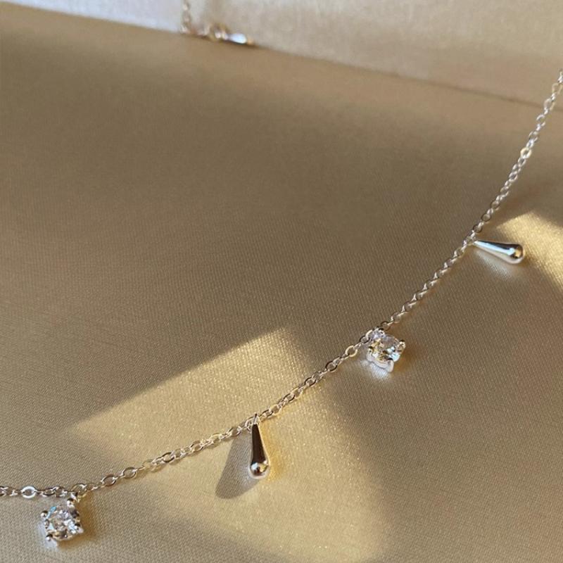 フレンチネックレス レディース 手頃な高級感 ニッチ 上品デザイン ジルコン 重ね付け S925シルバー 鎖骨ネックチェーン
