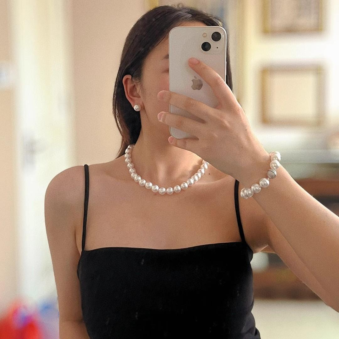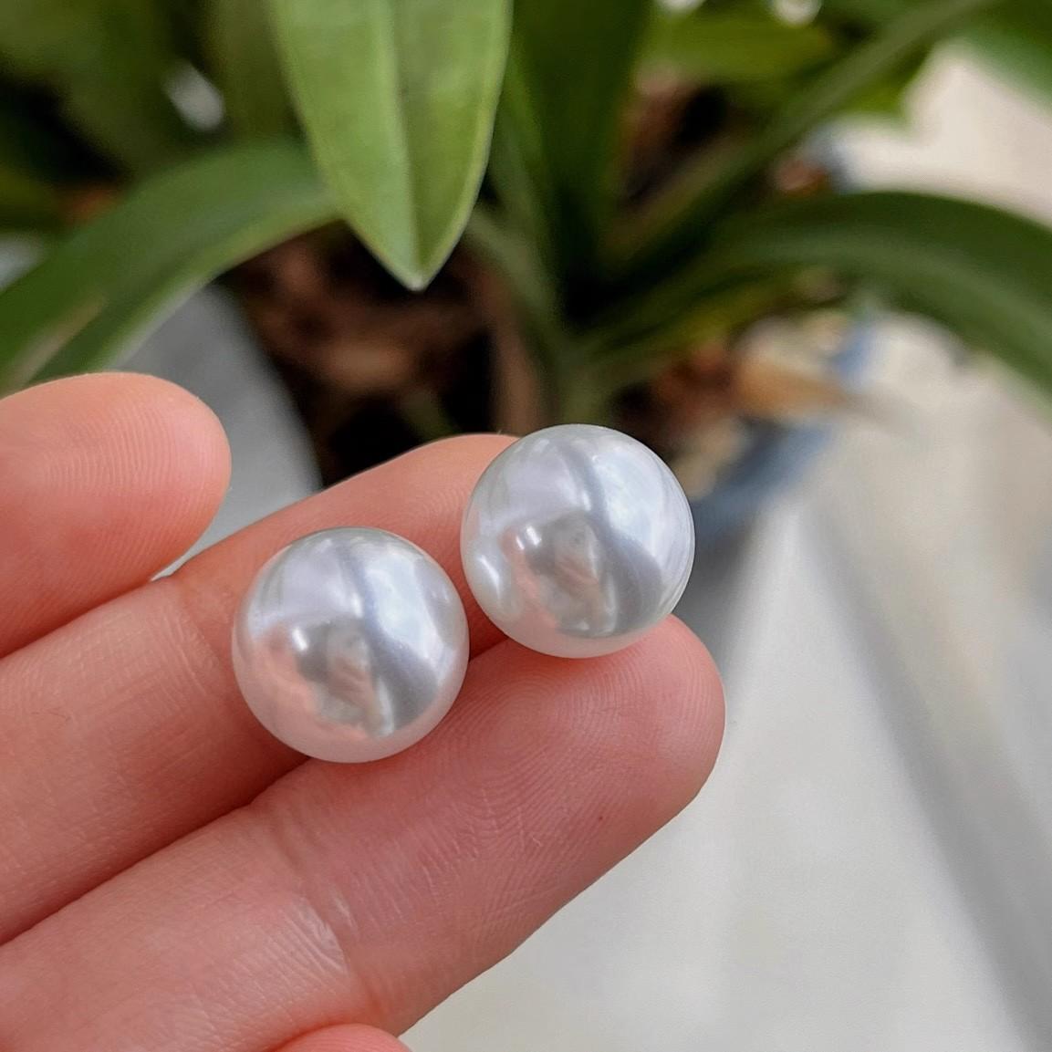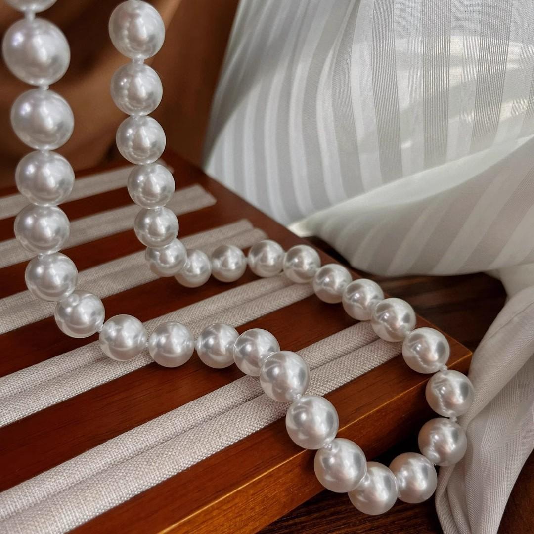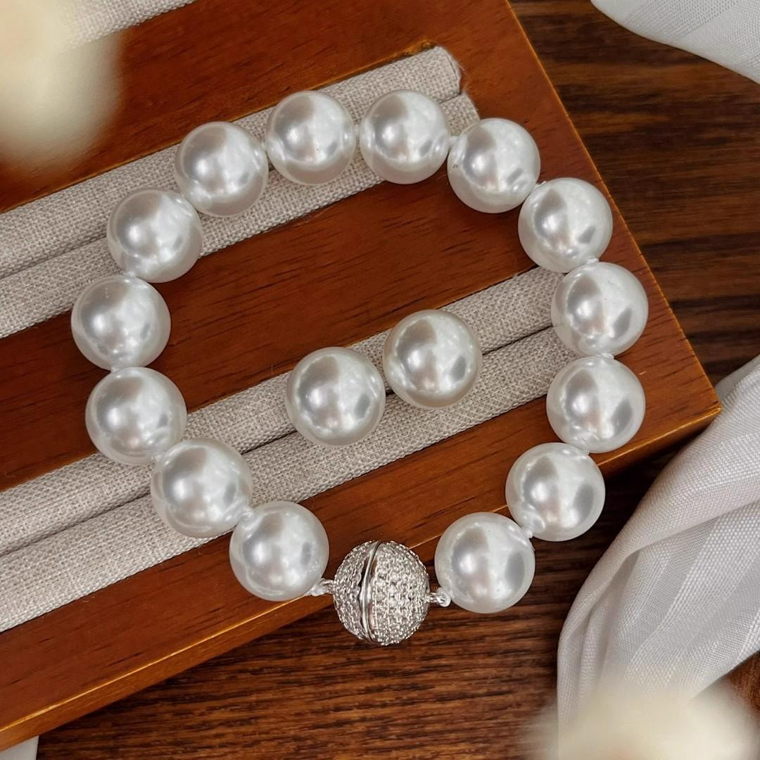 12Mm cold white, pearl decorative necklace + bracelet + stud earrings, Jewelry set, magnetic button, suitable for parties, graduations, birthday gifts, Mother's Day gifts, length 45cm