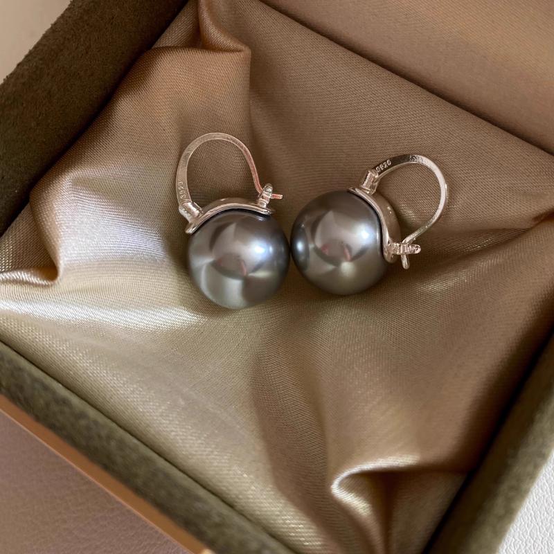 14Mm bucket pearl earrings, women's light luxury high-end sense s925 sterling silver bucket ear buckle
