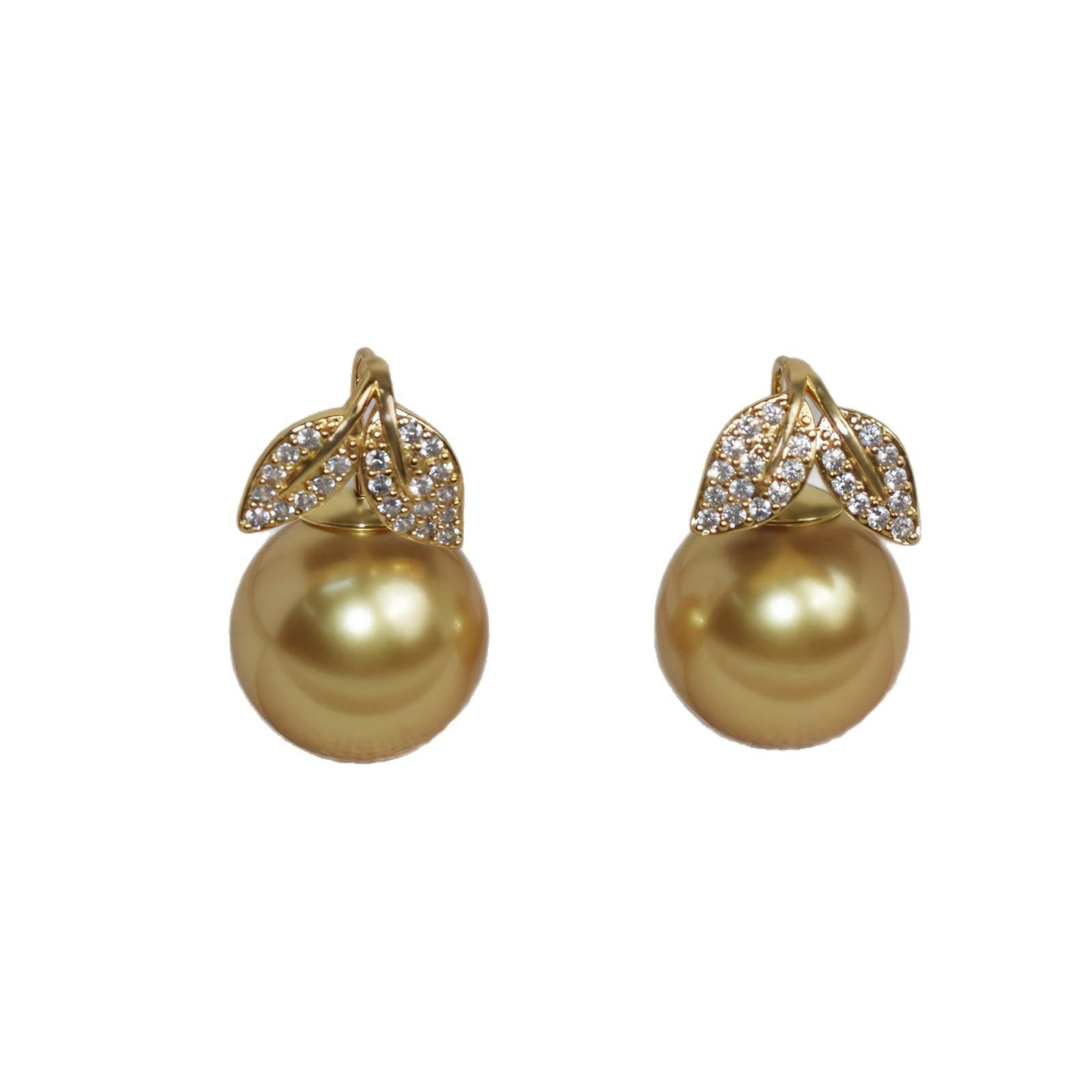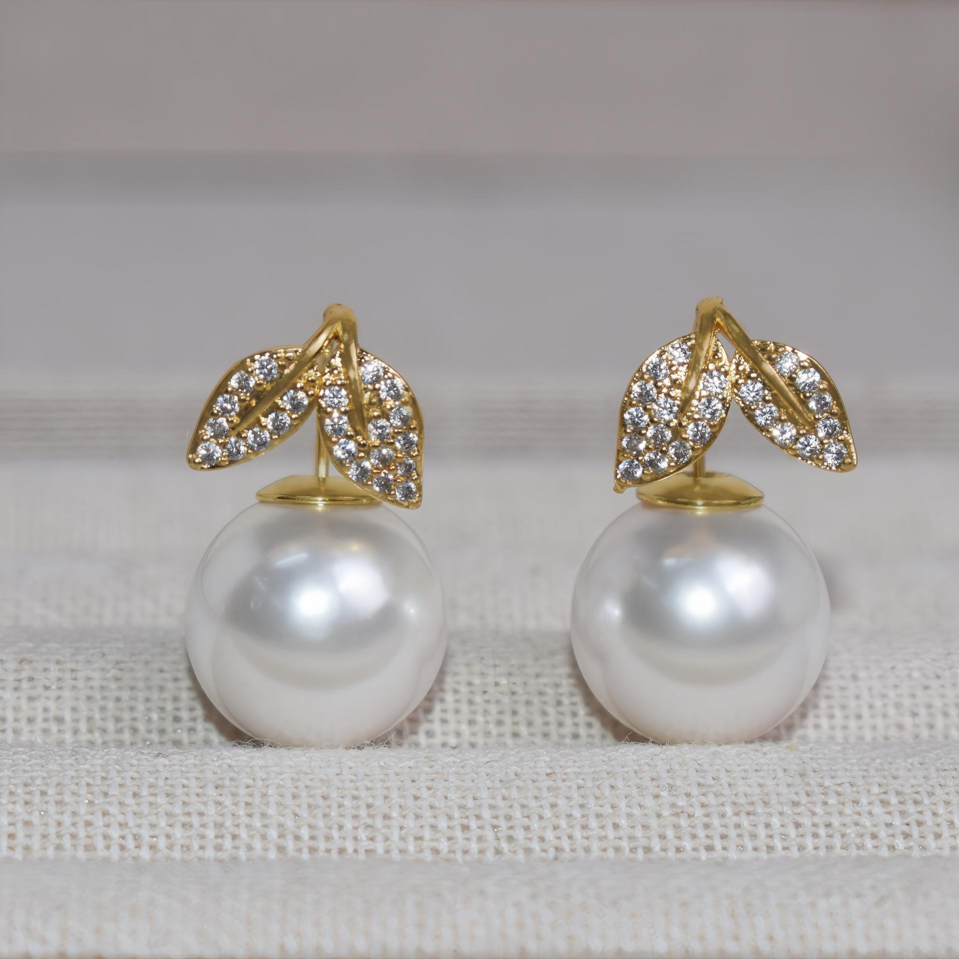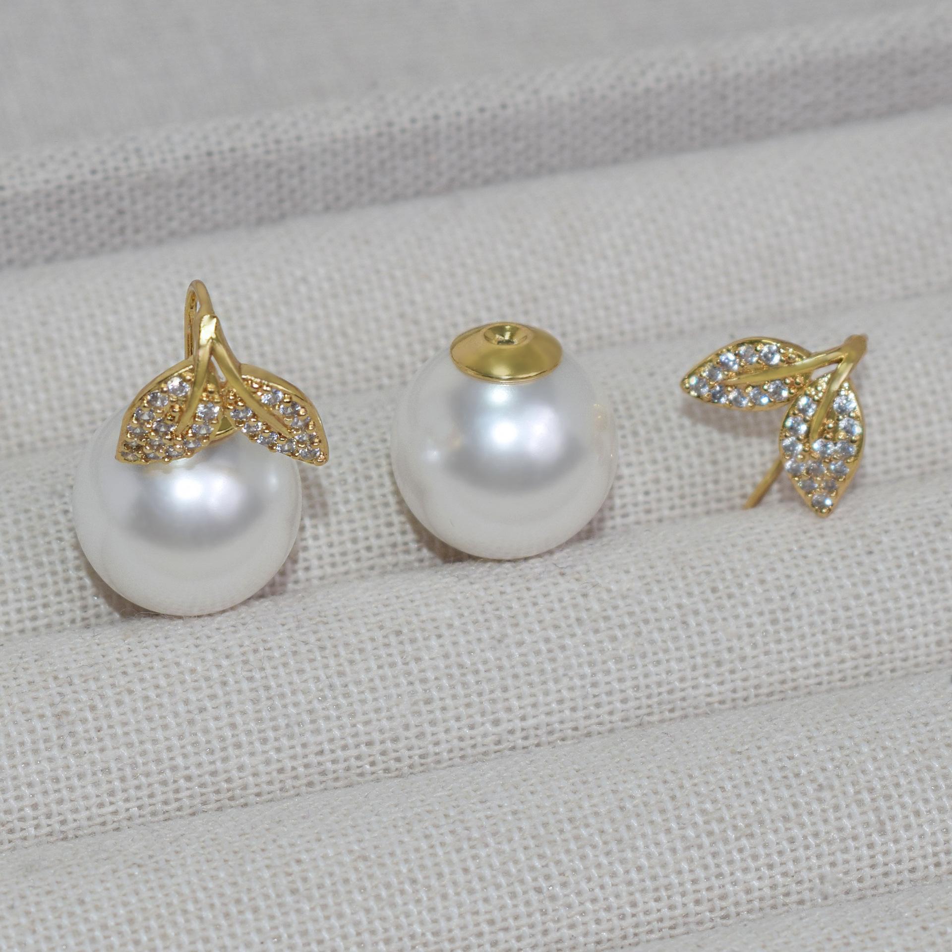 14Mm zircon fishtail leaf pearl stud earrings, white, gold, pink earrings, seaside photos, parties, birthday gifts
