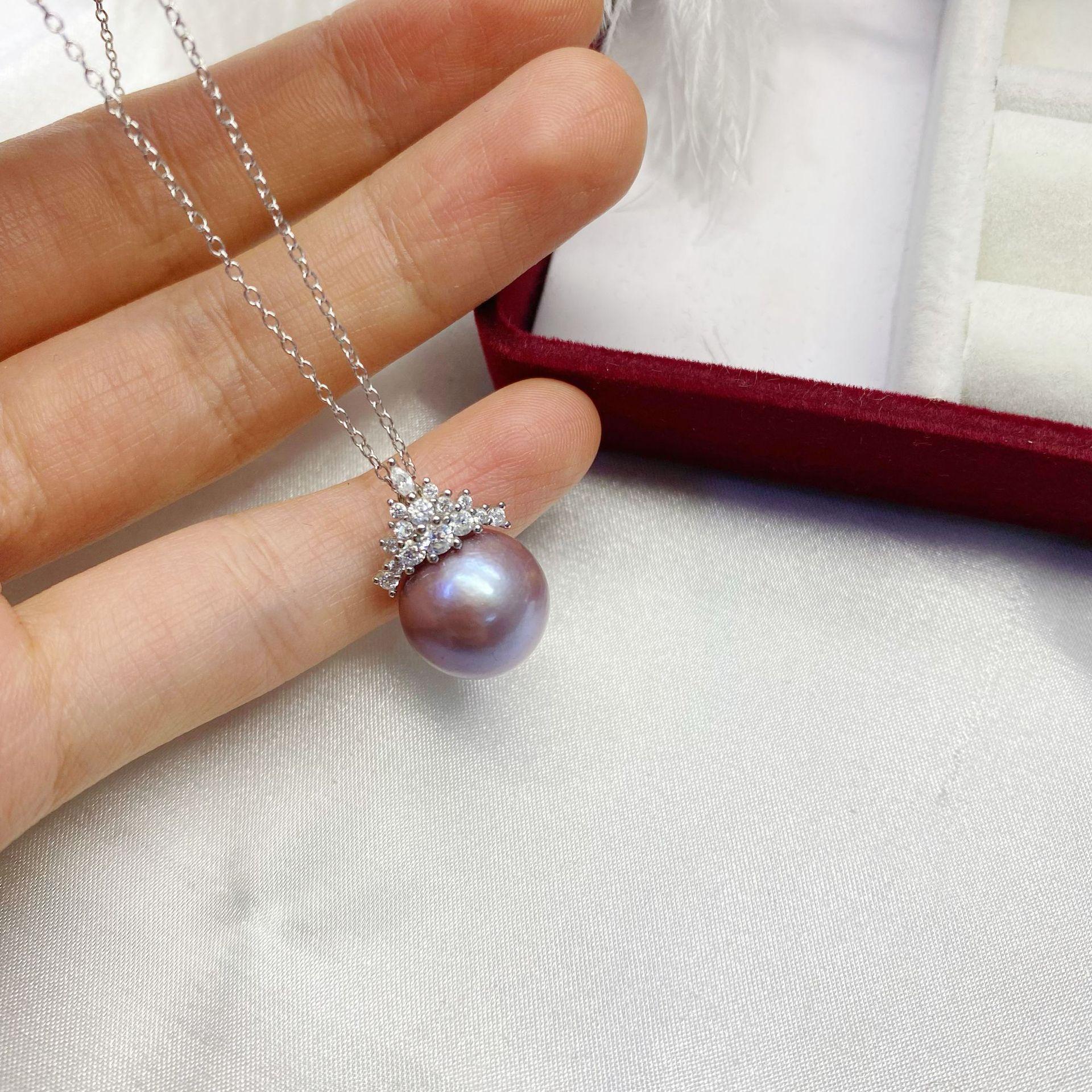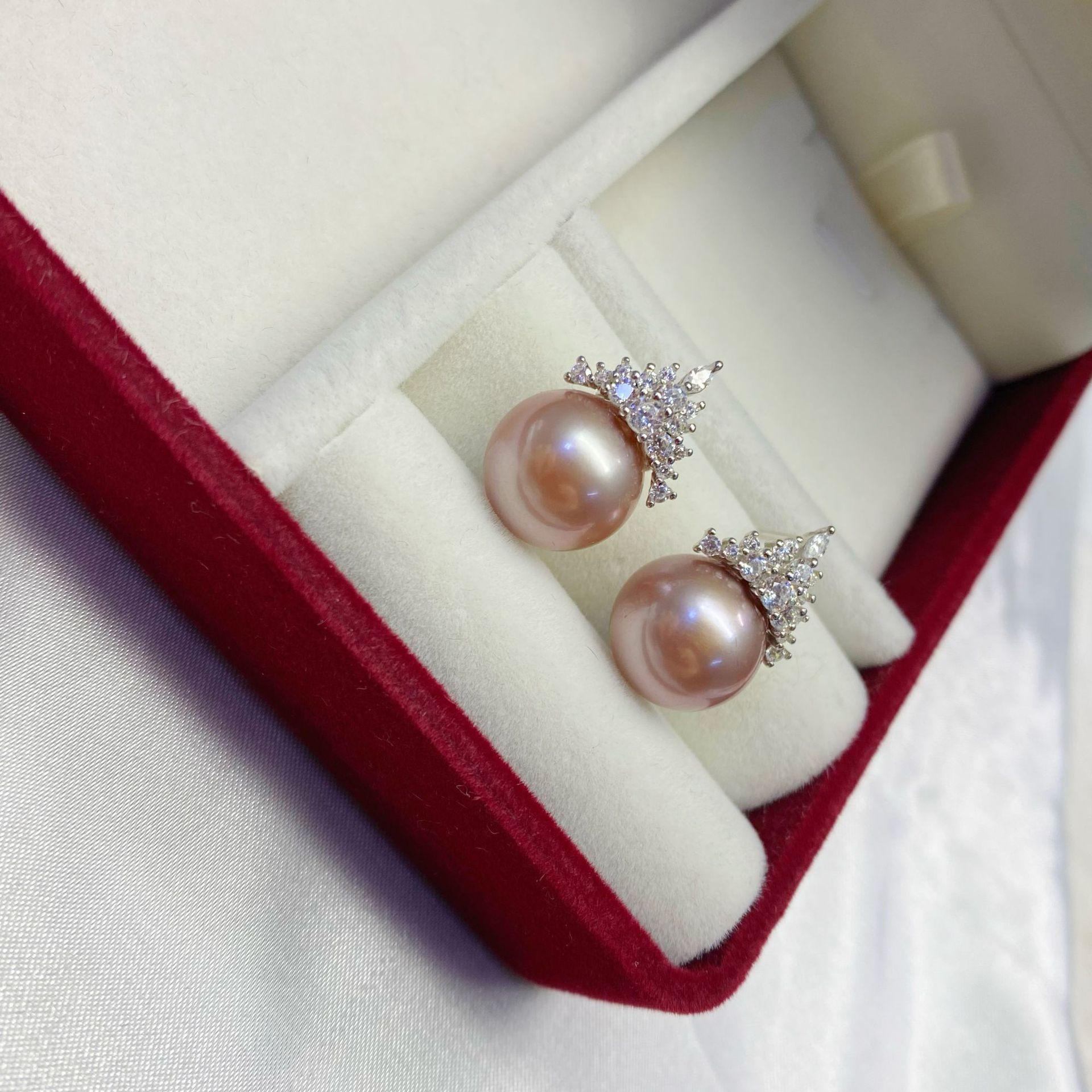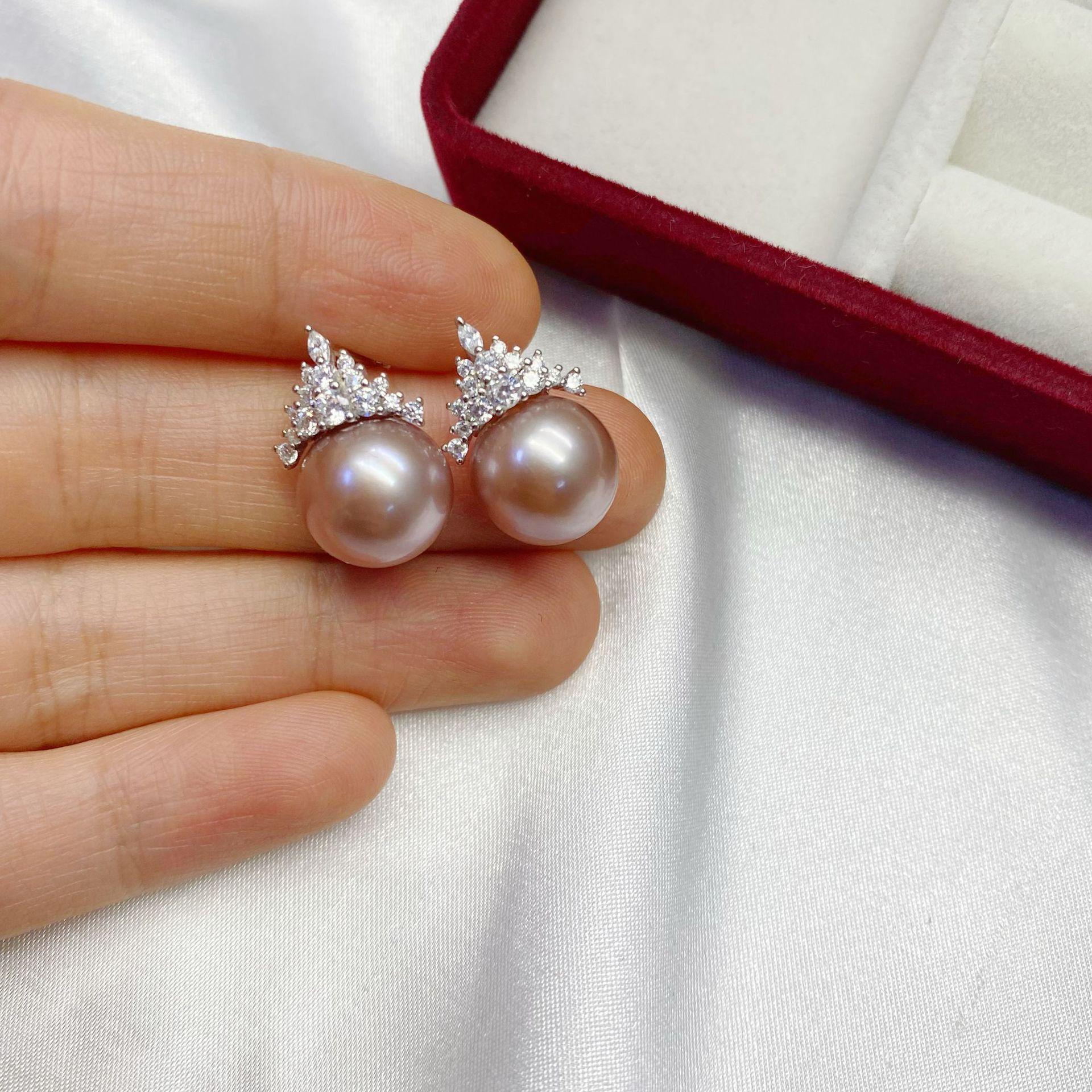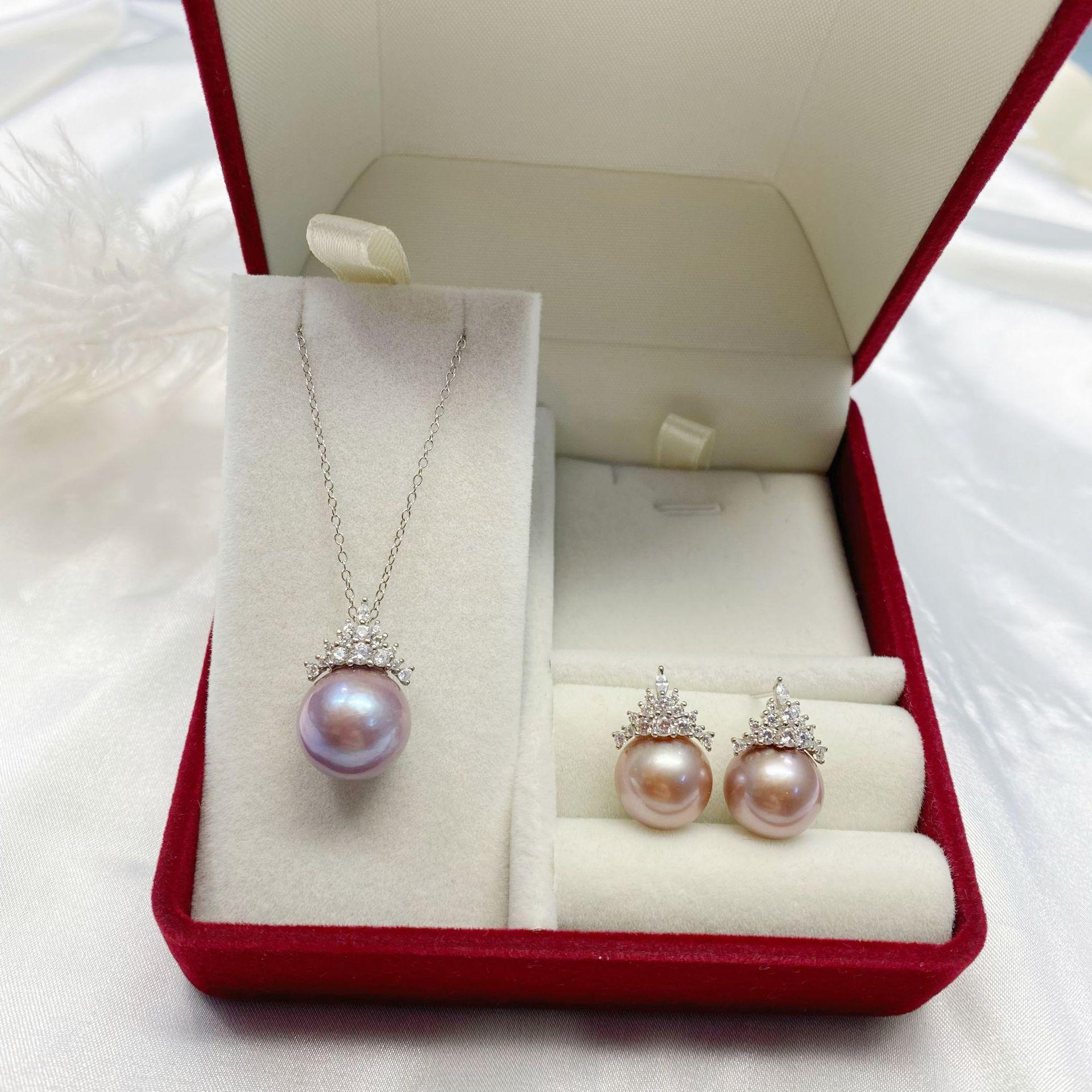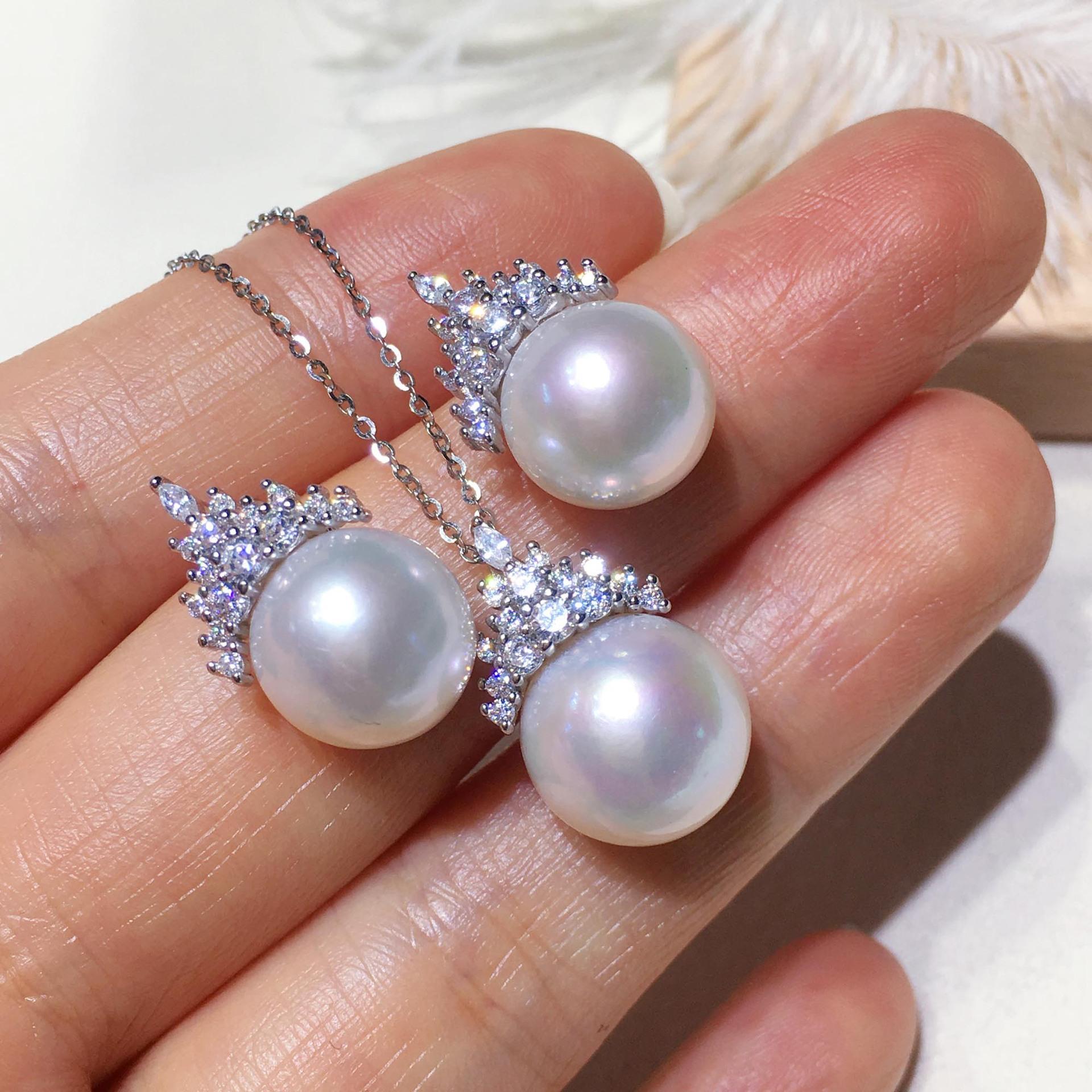 14mmTianran freshwater pearl s925 silver ice and snow queen, pendant stud earrings set