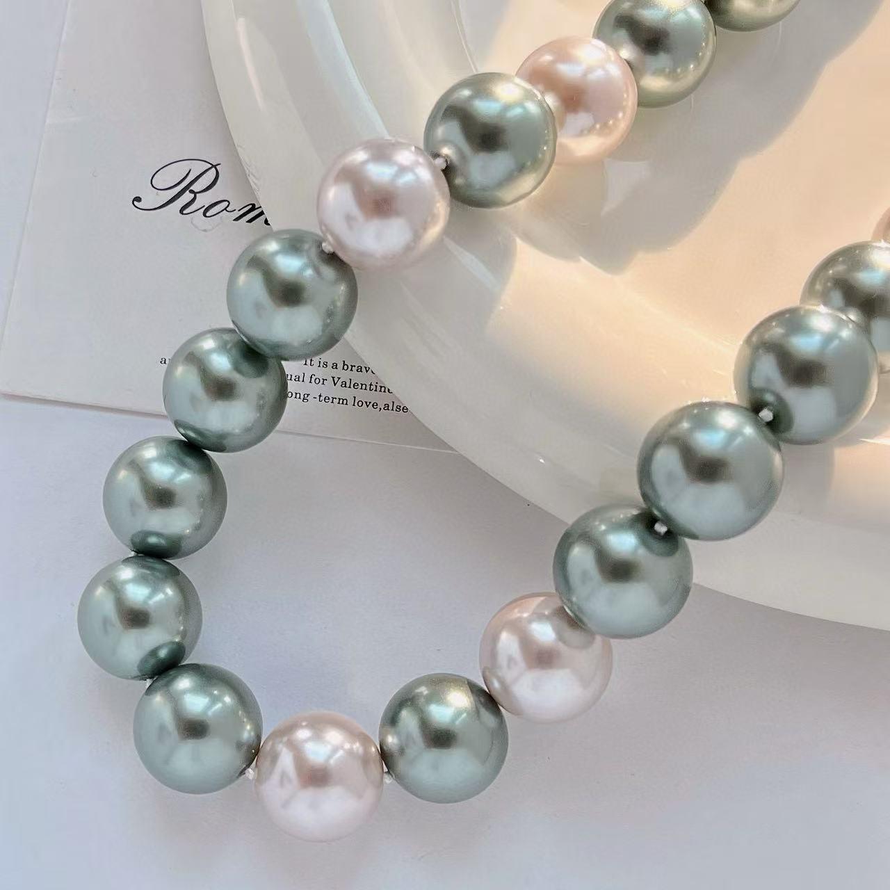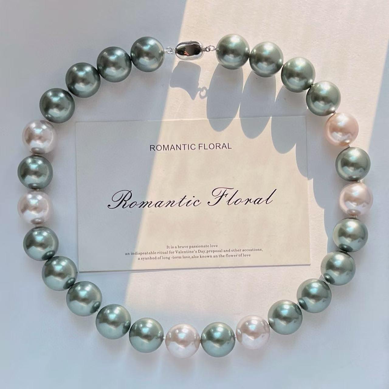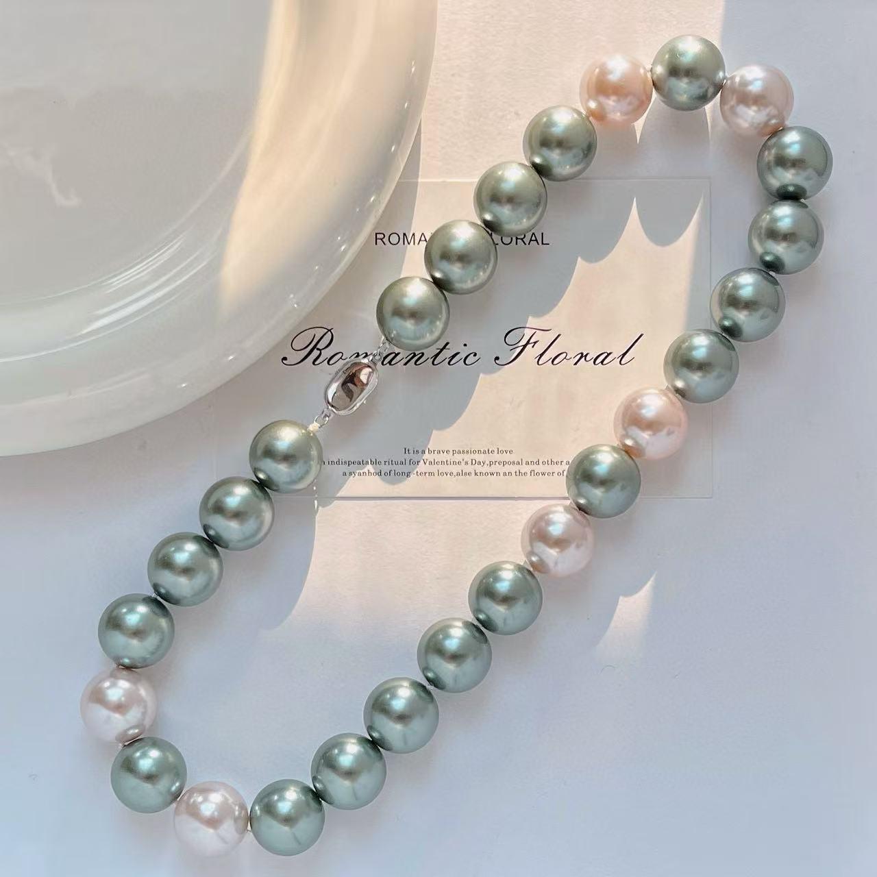 2025 new 16mm pearl chain, white green necklace sweet, suitable for parties, birthday gifts, mother's day gifts