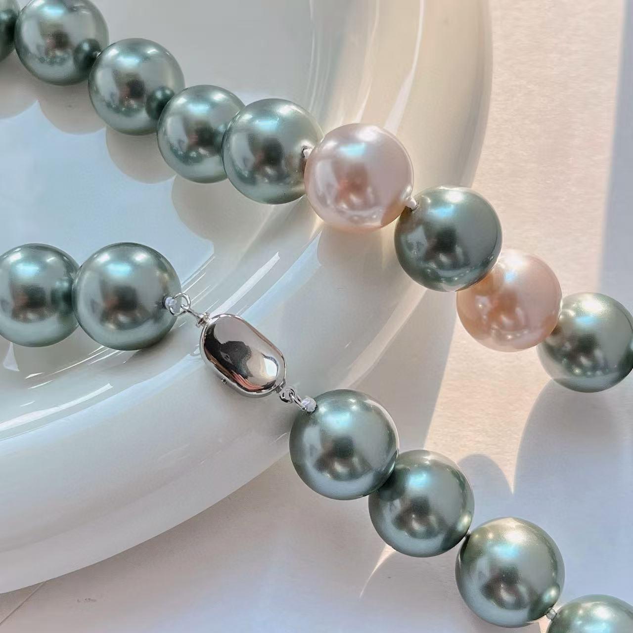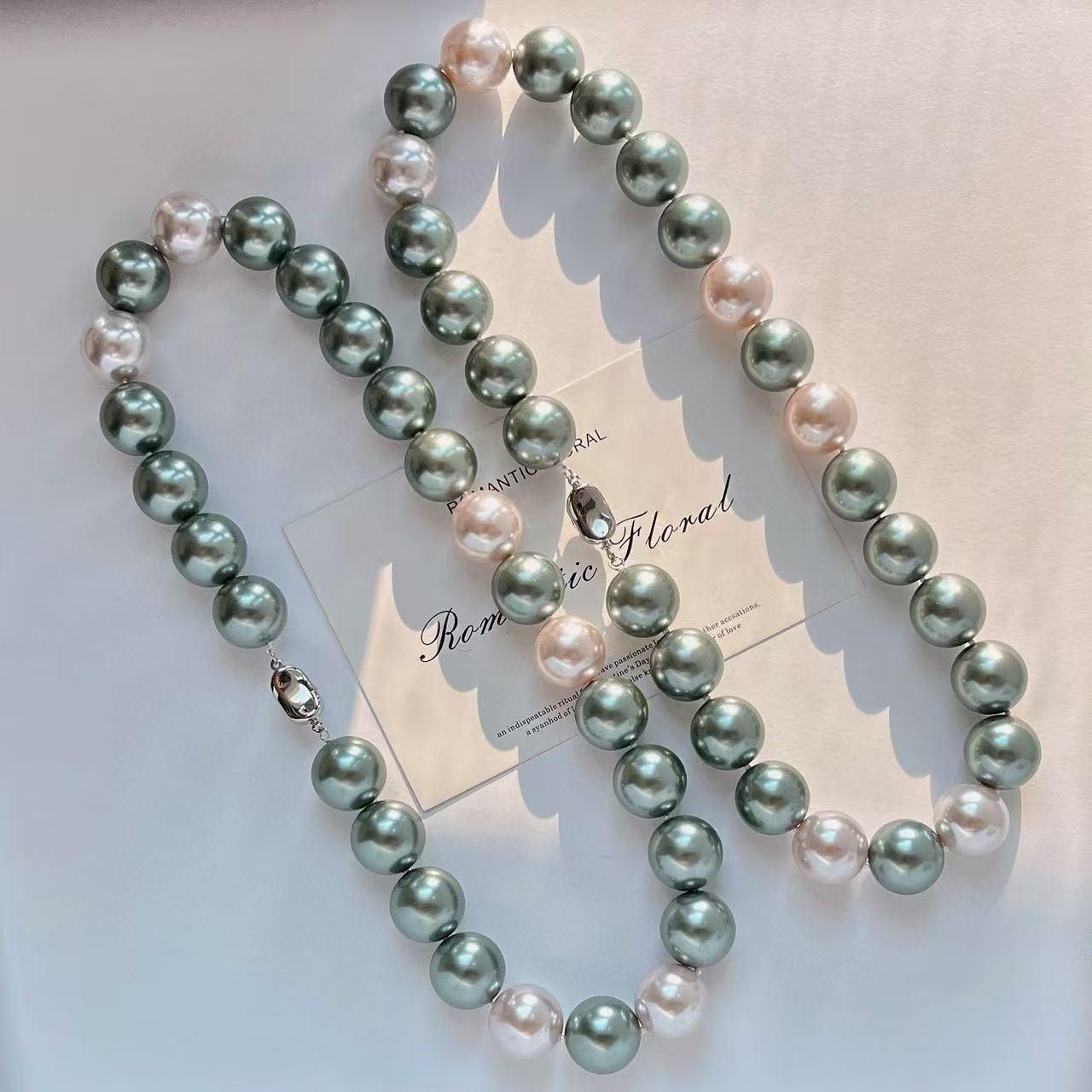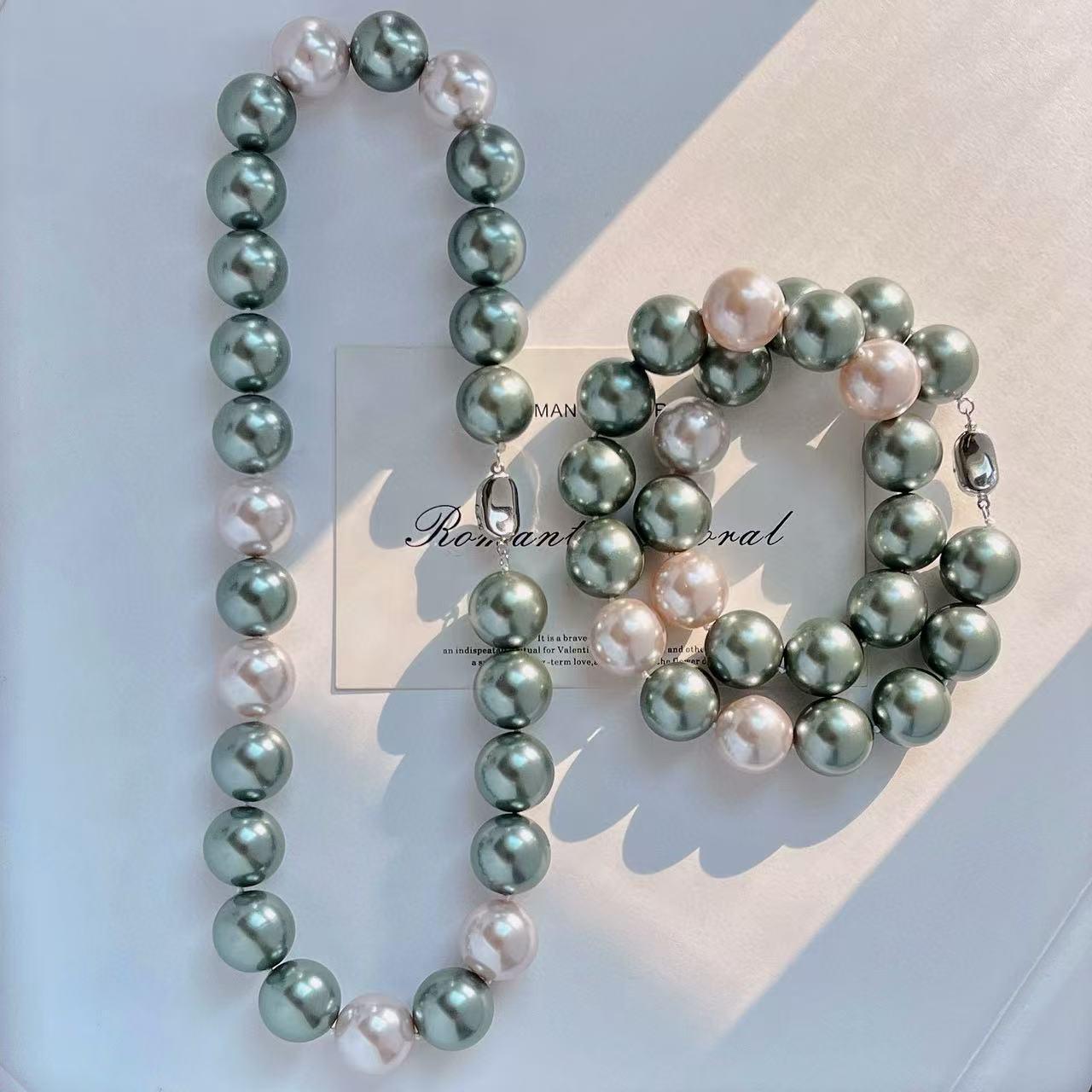 2025 new 16mm pearl chain, white green necklace sweet, suitable for parties, birthday gifts, mother's day gifts