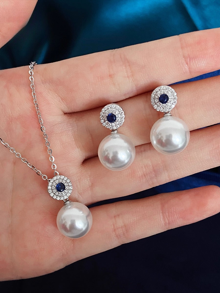 2025 New White Pearl Earrings for Women | Sapphire Zirconia & Diamond Design | Light Luxury High-End | S925 Silver Stud Earrings