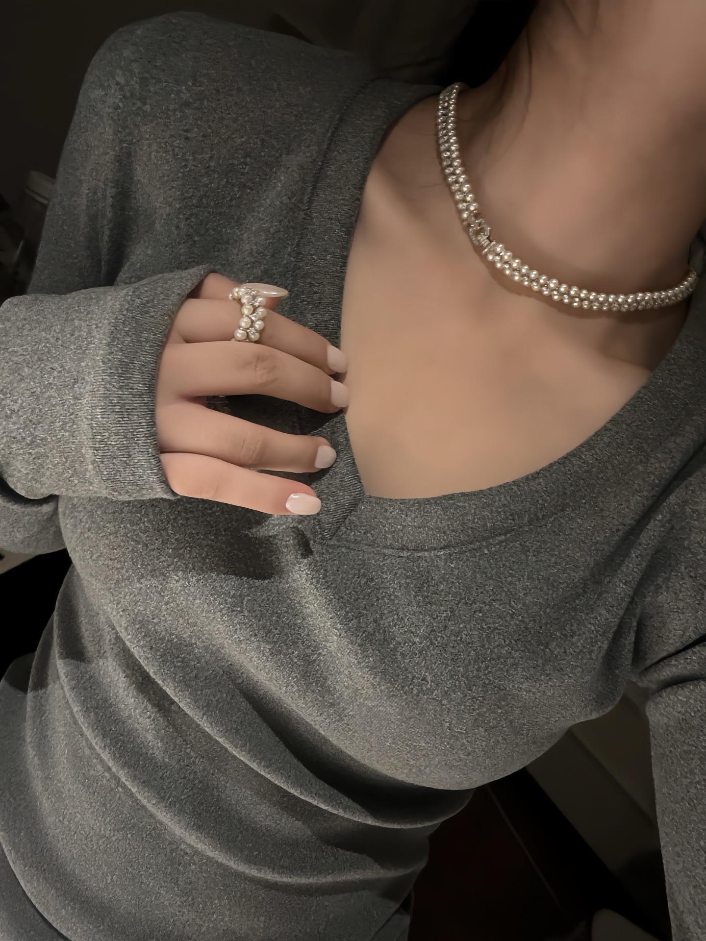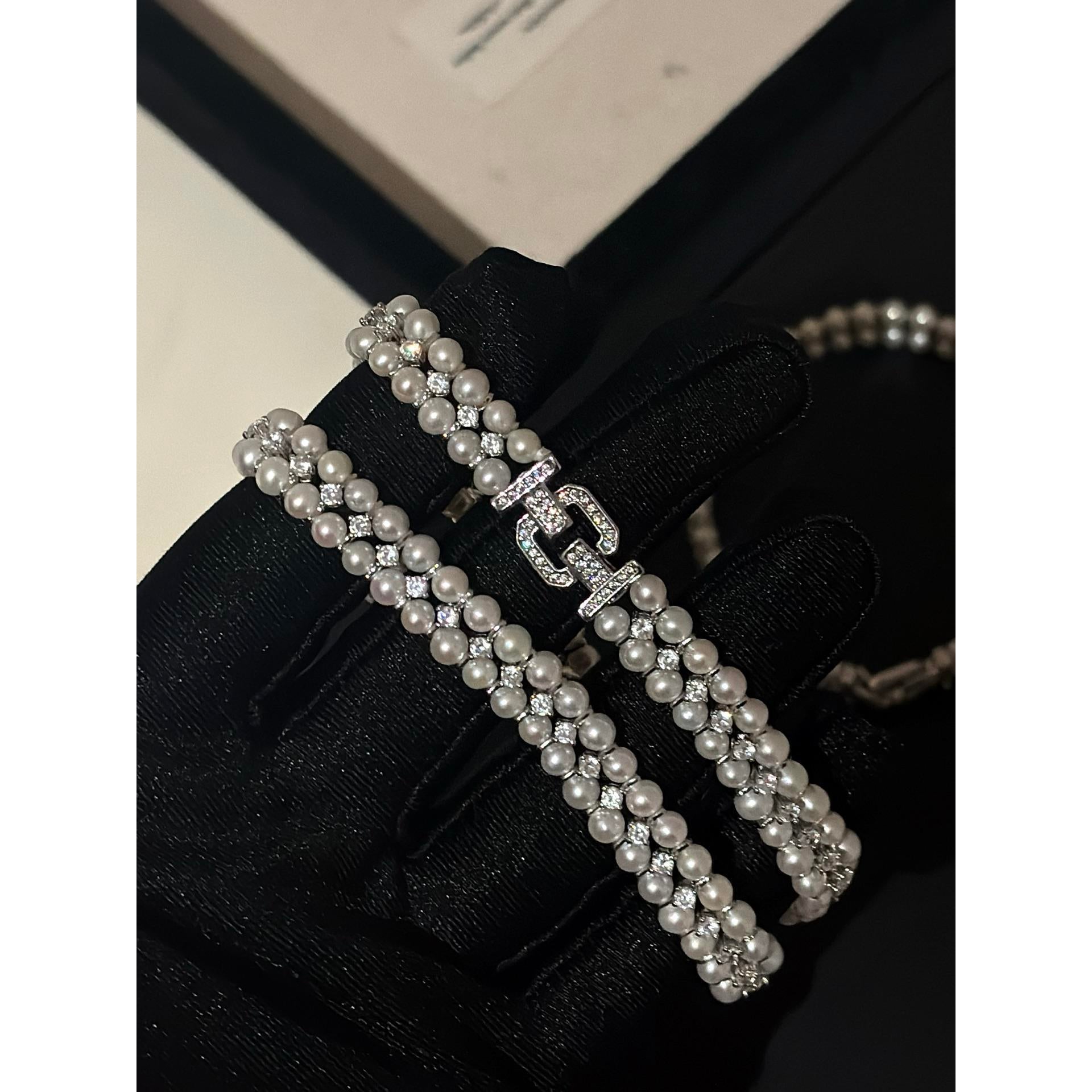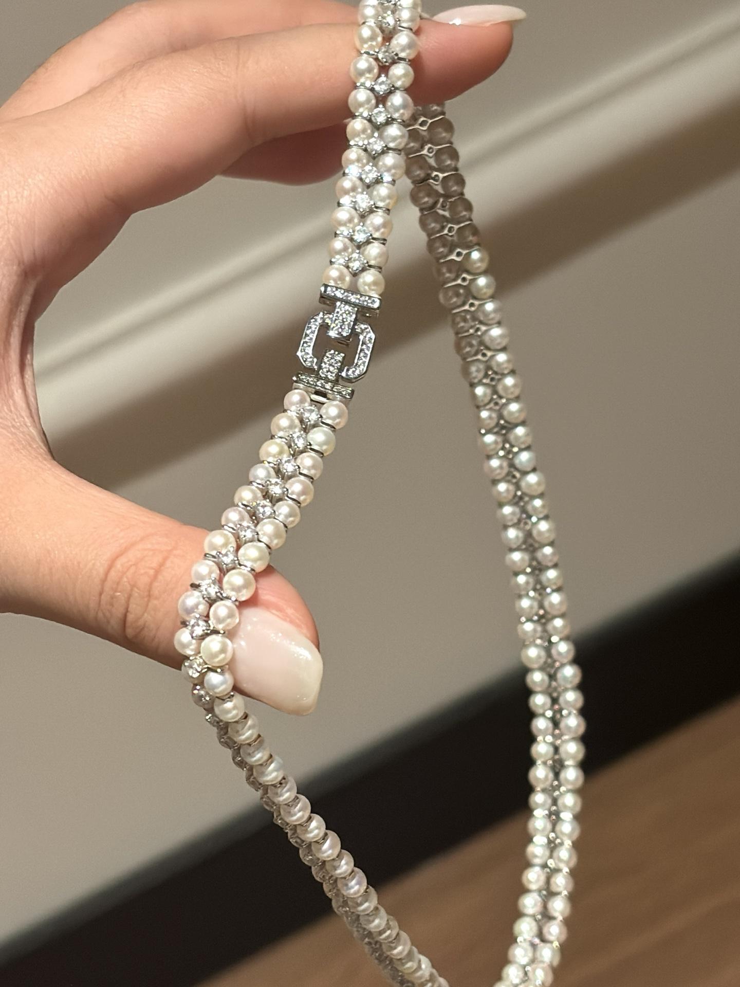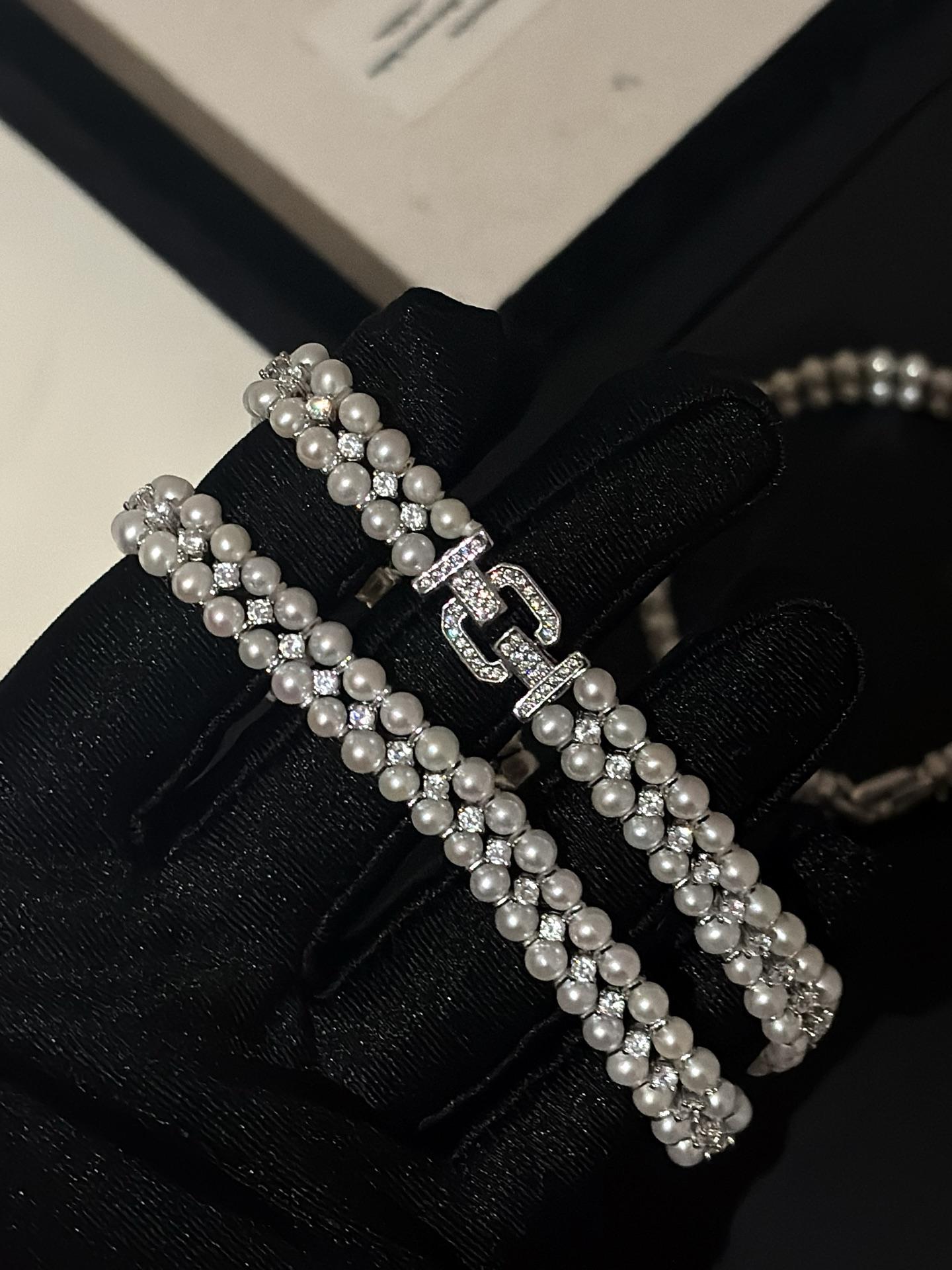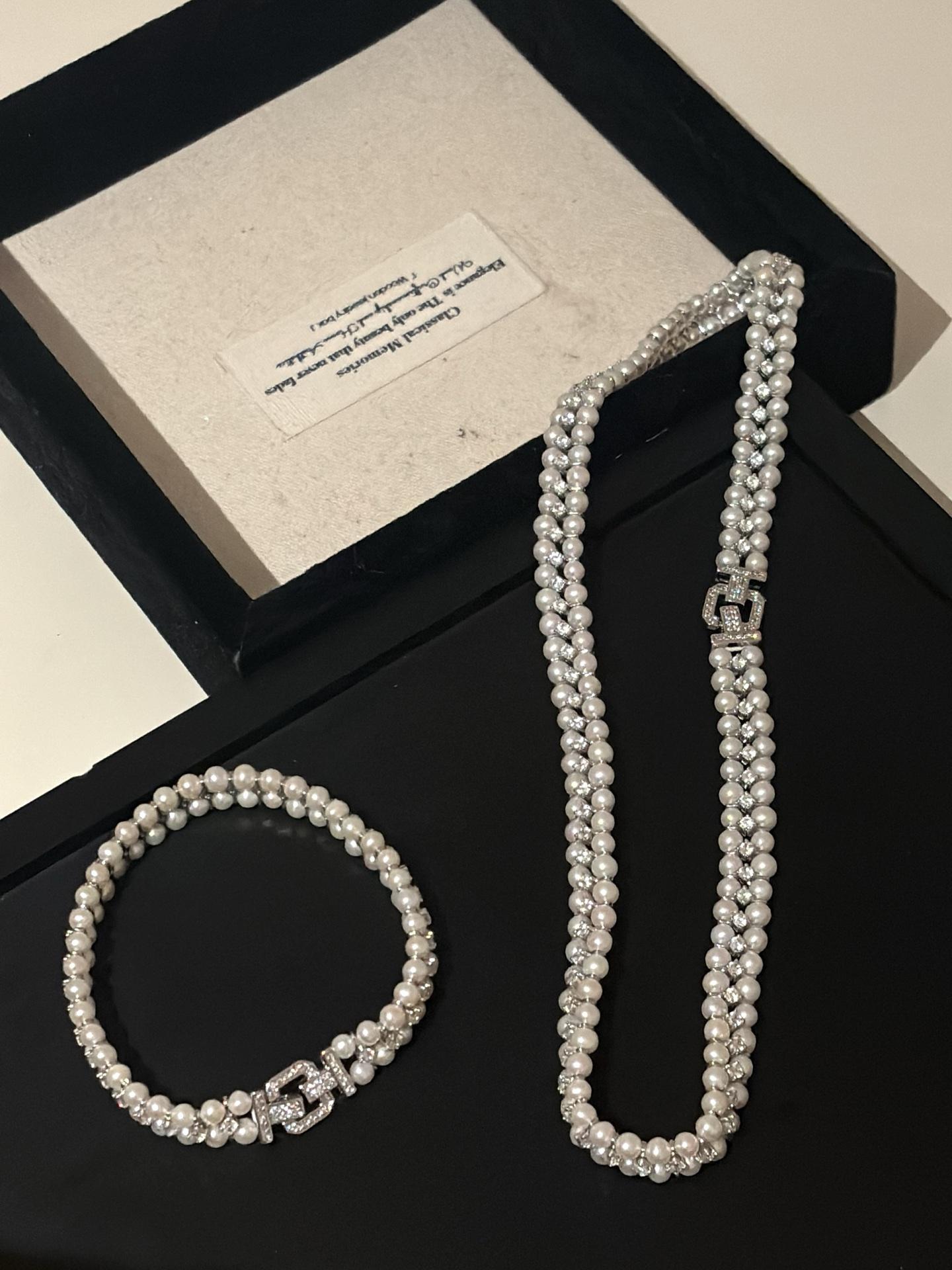 5mm Double-Row Pearl Necklace & Bracelet Set – Zircon Clasp, Elegant Party Jewelry Gift for Women