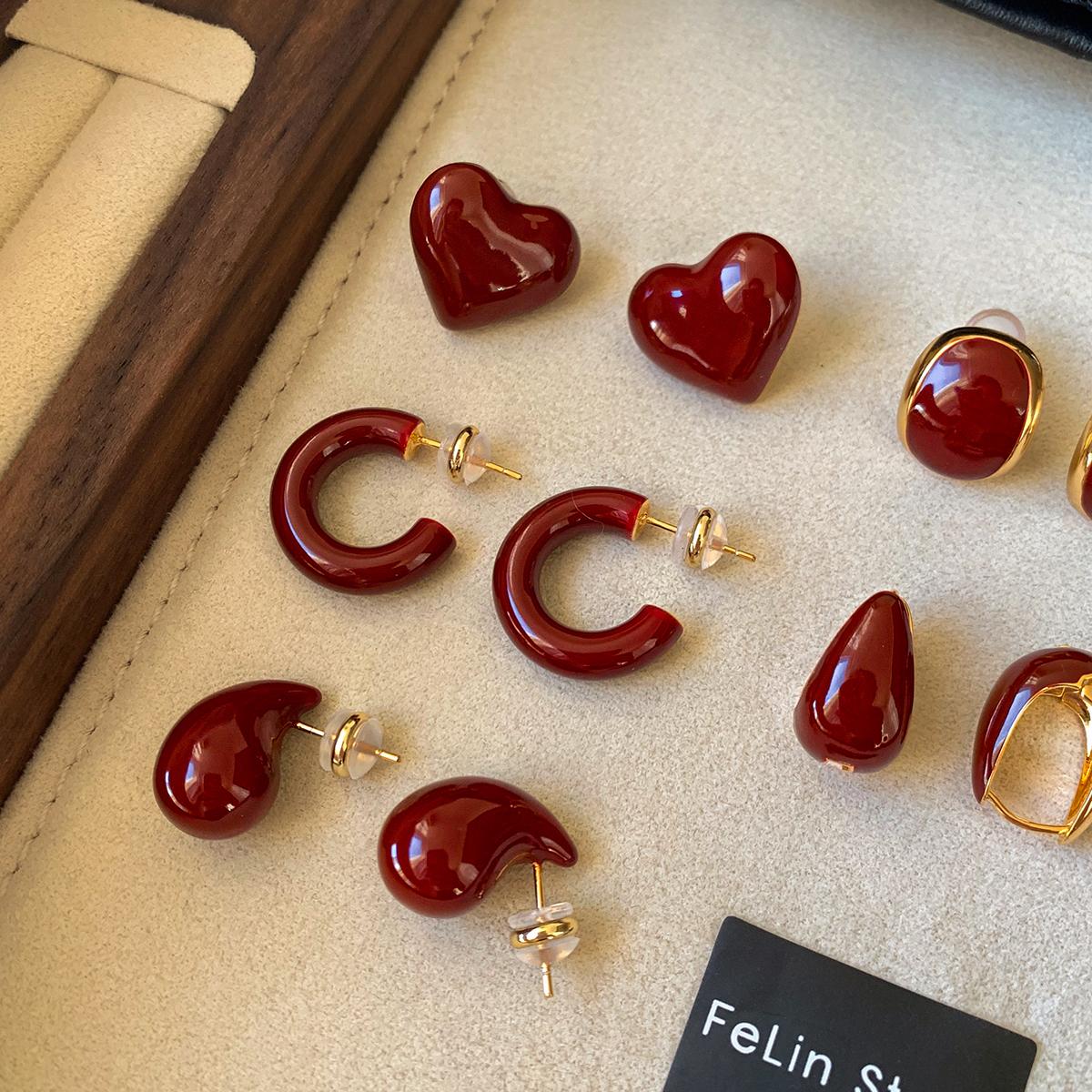 925 Sterling Silver Needle, Red Earrings Women's Jewelry, Premium Love Stud Earrings