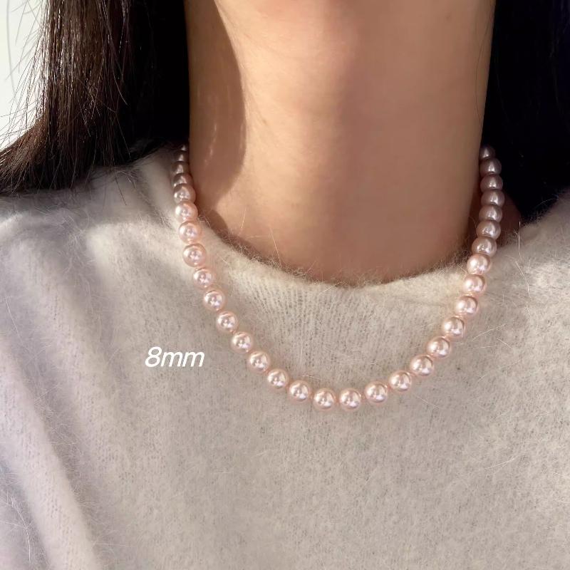 Blush Pink Pearl Necklace – 6mm / 8mm / 10mm / 12mm Classic Beaded Strand, Elegant Gift for Her shell pearl