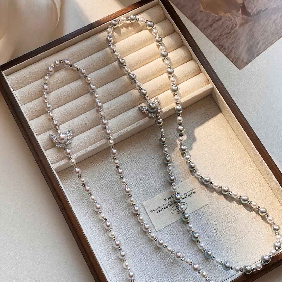 Butterfly Pearl Long Sweater Chain Premium Autumn and Winter Necklace French Necklace · [Butterfly Universal Buckle] 6 + 8mm