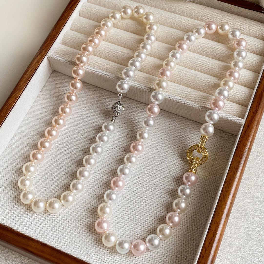 Candy color gradual change pearl necklace high sense dry rose pink mixed color sweater chain