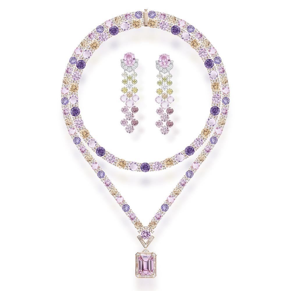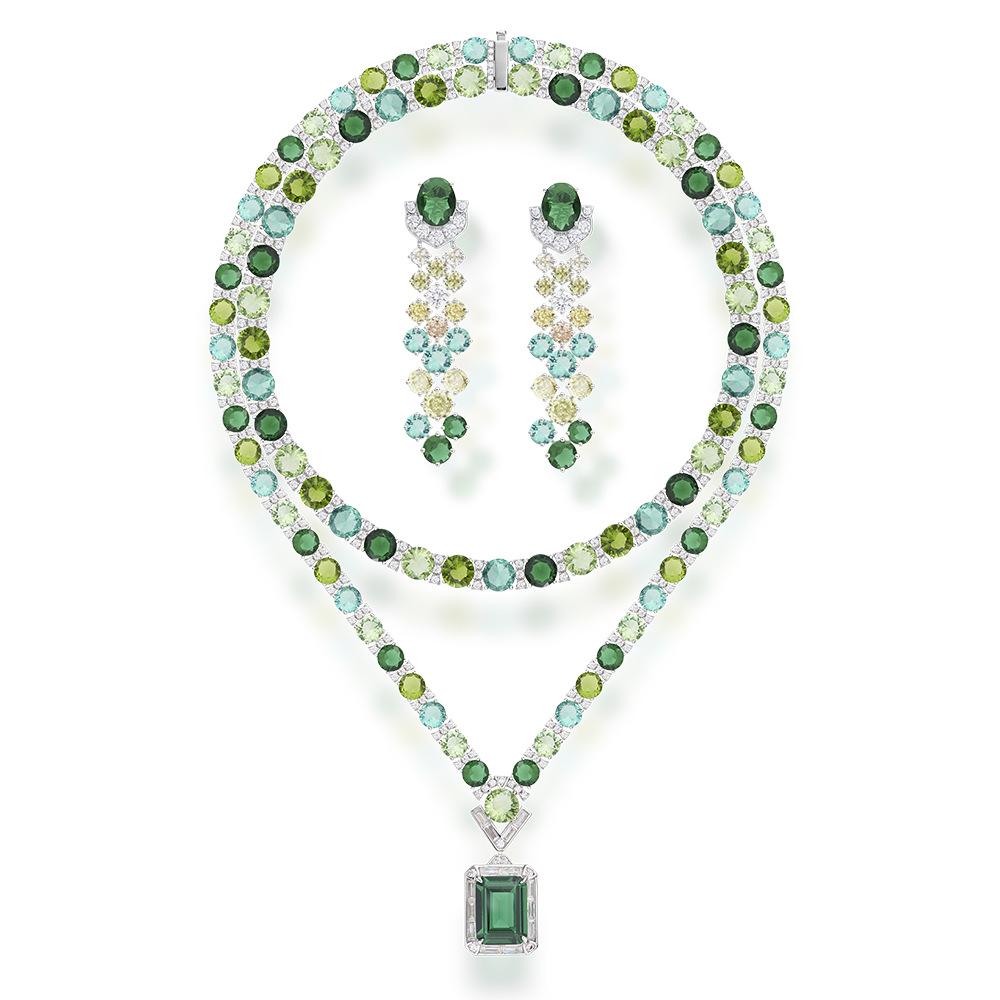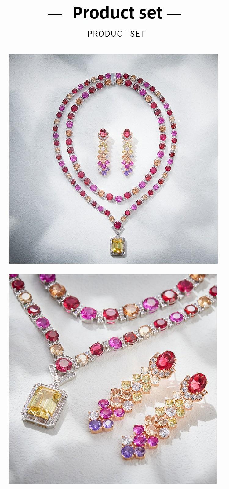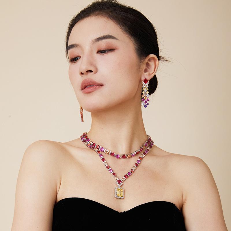 Colored necklace earrings jewelry set, gold-plated, suitable for women's evening dresses, evening dresses, gifts