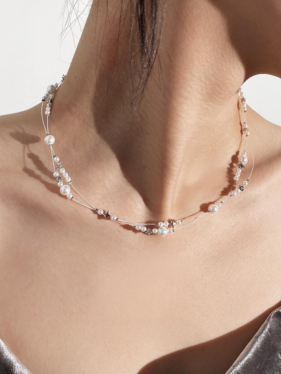 Double Nebula Pearl Necklace Women's Niche Design Temperament Necklace · Nebula Double Pearl Necklace
