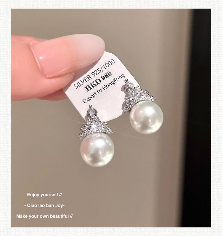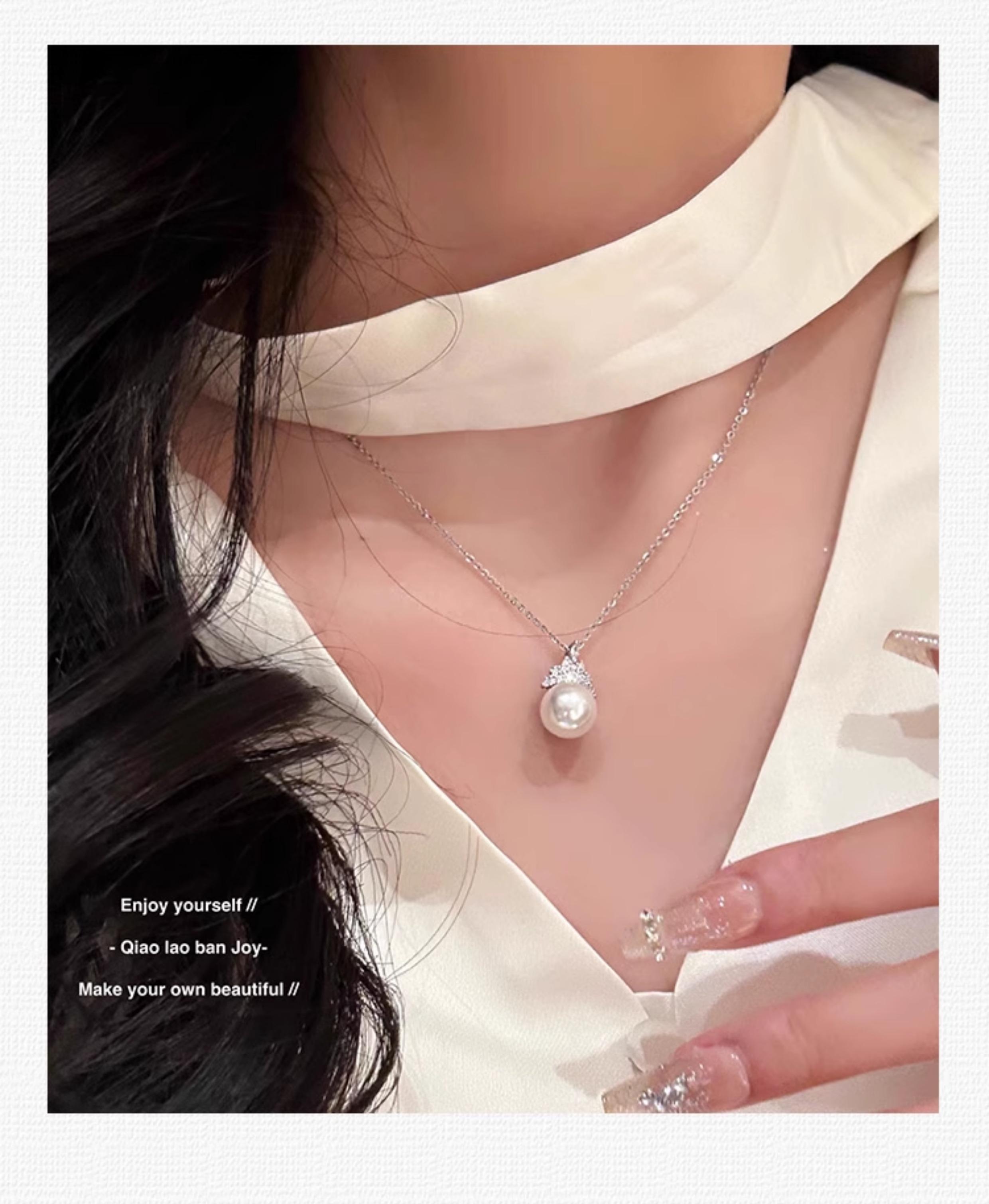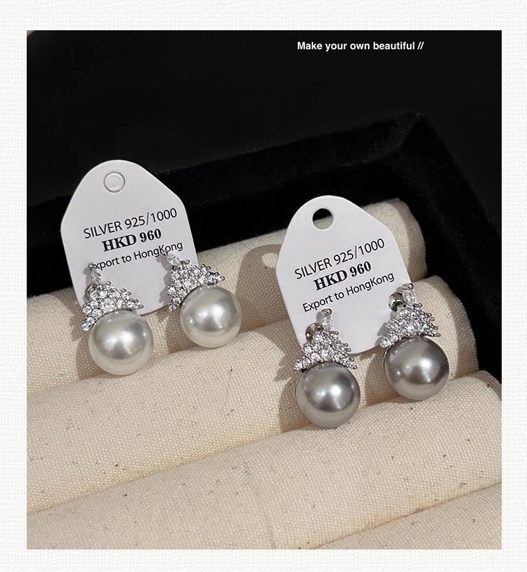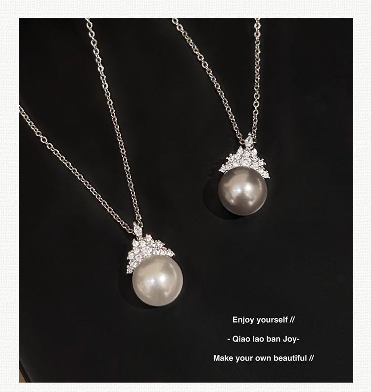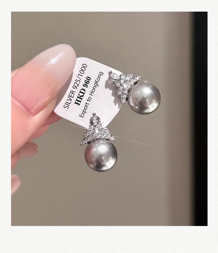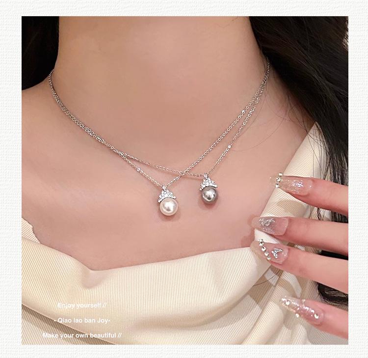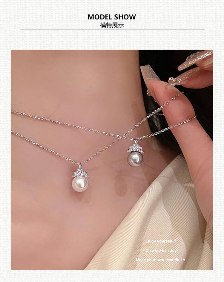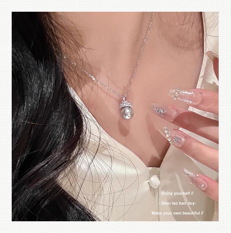 Flash diamond gray pearl necklace earrings set 925 silver needle set light luxury texture temperament simple, girlfriend gift, party