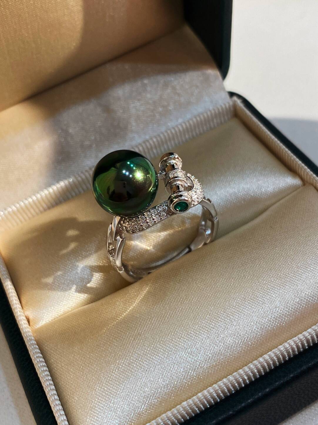 Horseshoe pearl retro s925 sterling silver open ring 10mm open adjustable