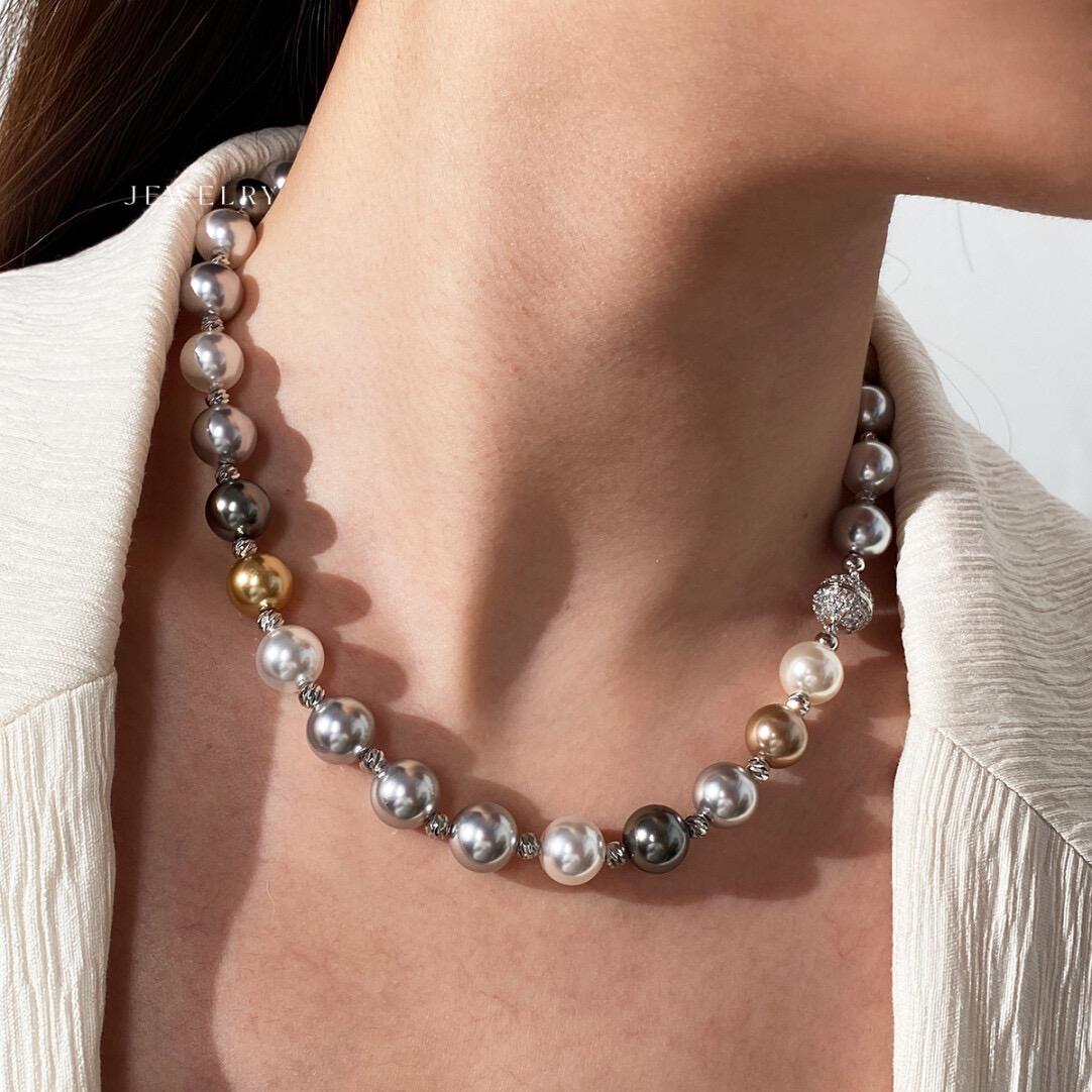 Mixed Color Pearl Necklace High Temperament Necklace Morandi Mixed Color Pearl Necklace 10mm 18inch