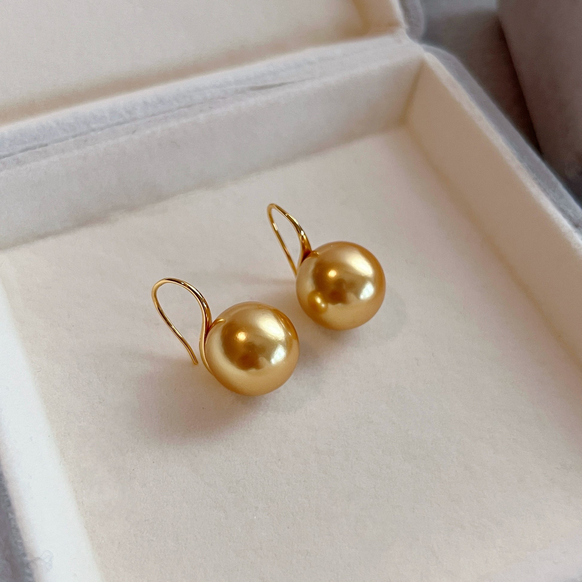 Nanyang Gold Pearl Drop Earrings | 14mm Oversized Gold Classic Design | High Heels Style | Trendy Light Luxury Earrings