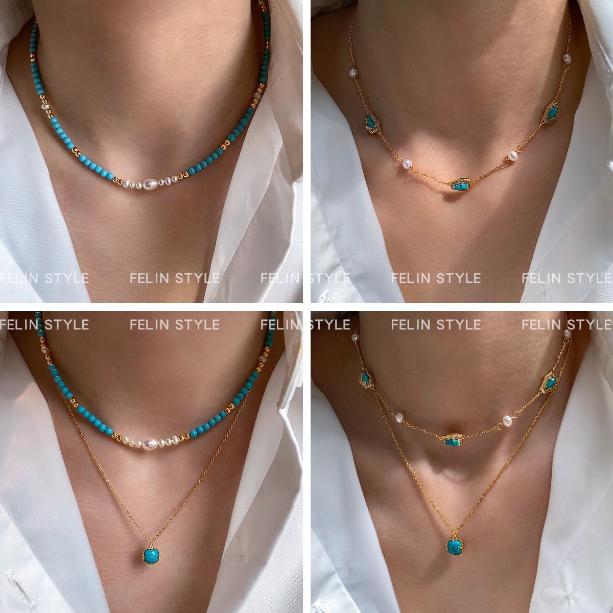 Natural freshwater pearl turquoise pendant beaded necklace women's 2025 super fire light luxury high-end feeling stacked neck chain
