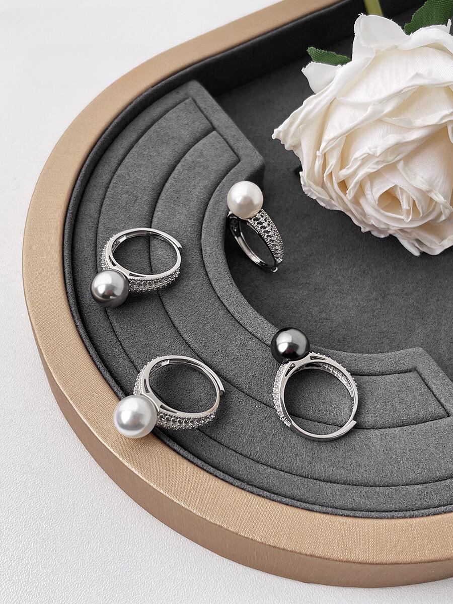 New French lace hollow pearl ring s925 silver premium ring 12mm