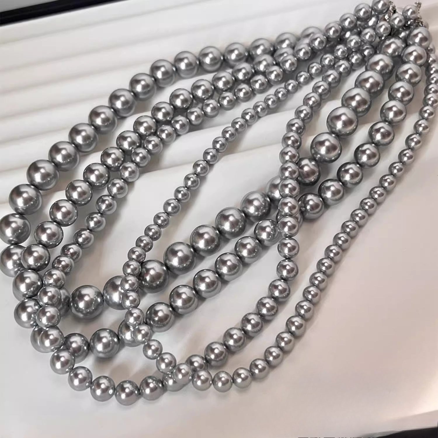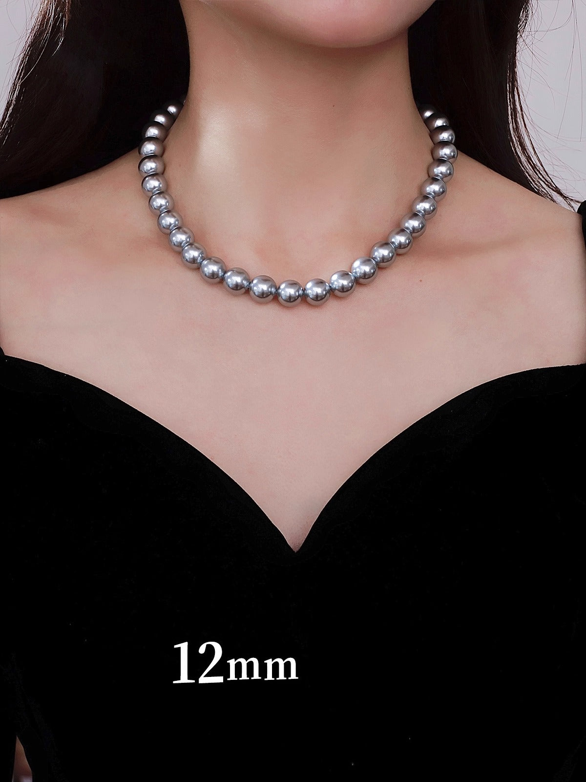 2025 New Women's Platinum Gray Pearl Necklace – 8mm Real Hemp Clavicle Chain Accessory