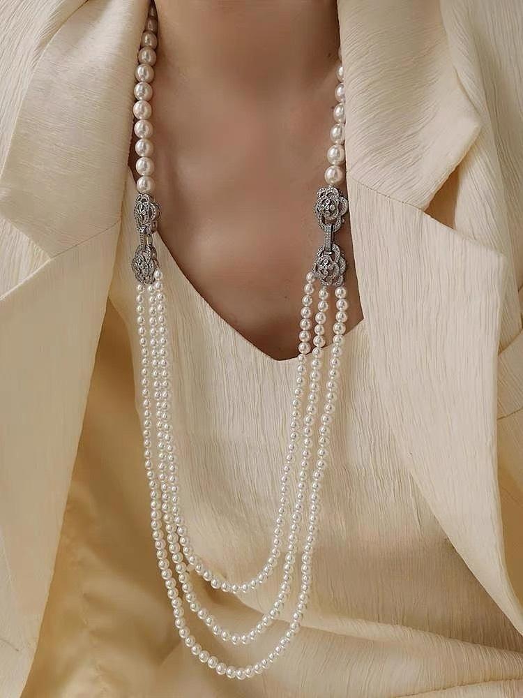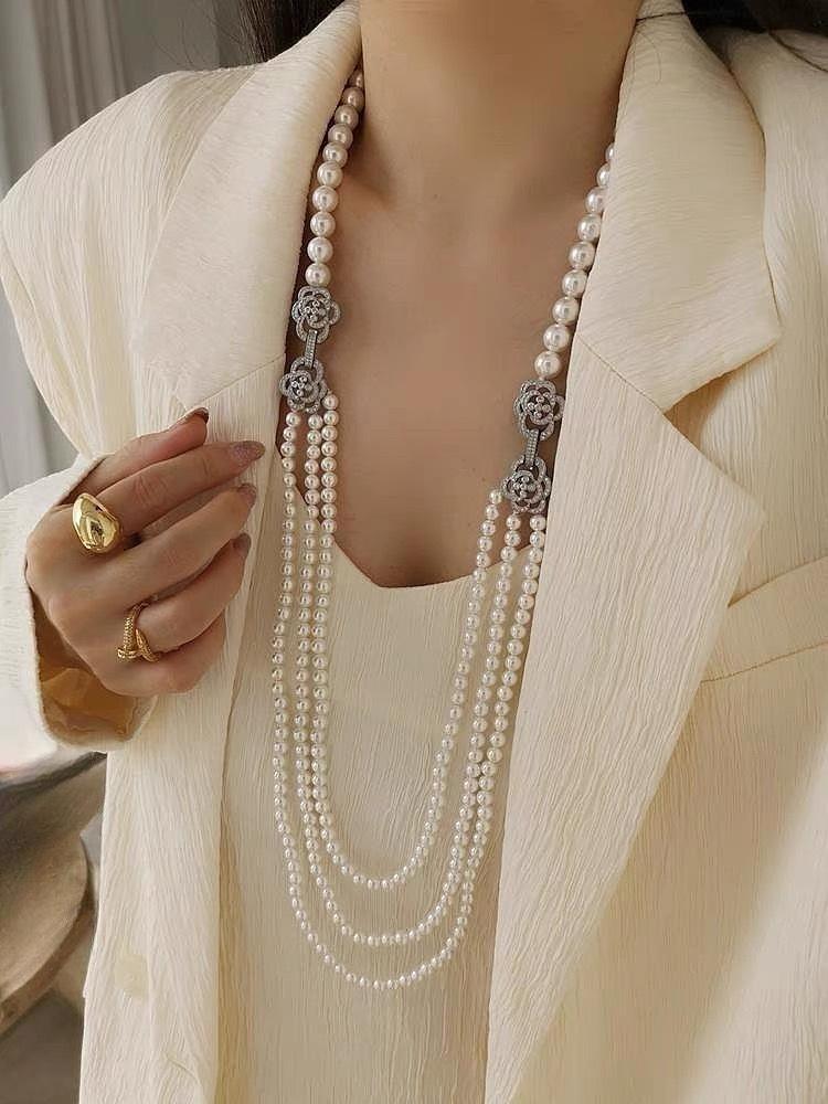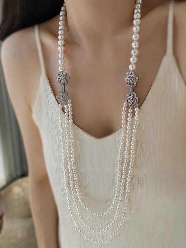 Pearl necklace four seasons sweater chain shell pearl mother shell versatile fashion simple elegant sweater chain