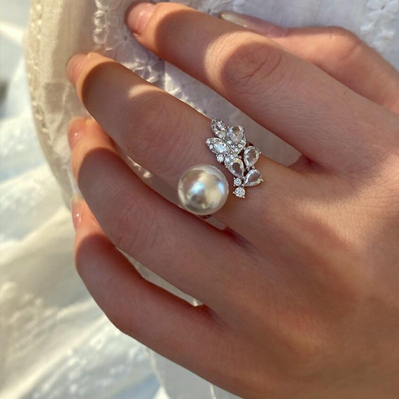 Pearl ring round strong light S925 sterling silver light luxury open ring 10mm ring 925 silver