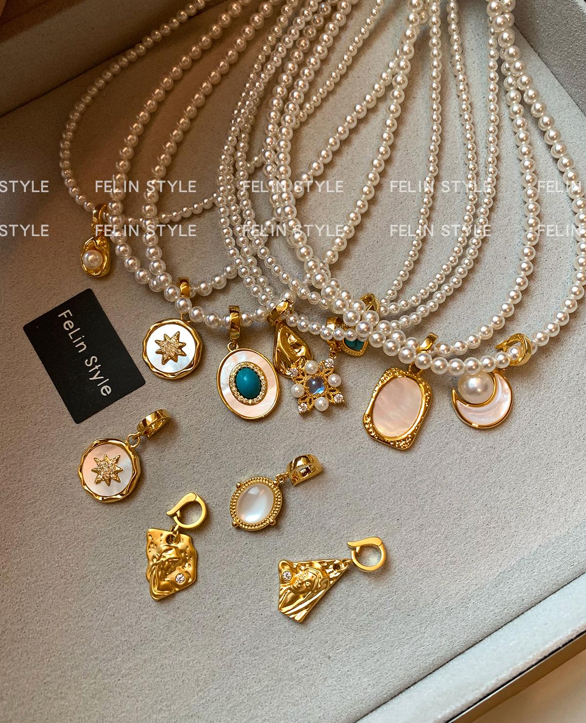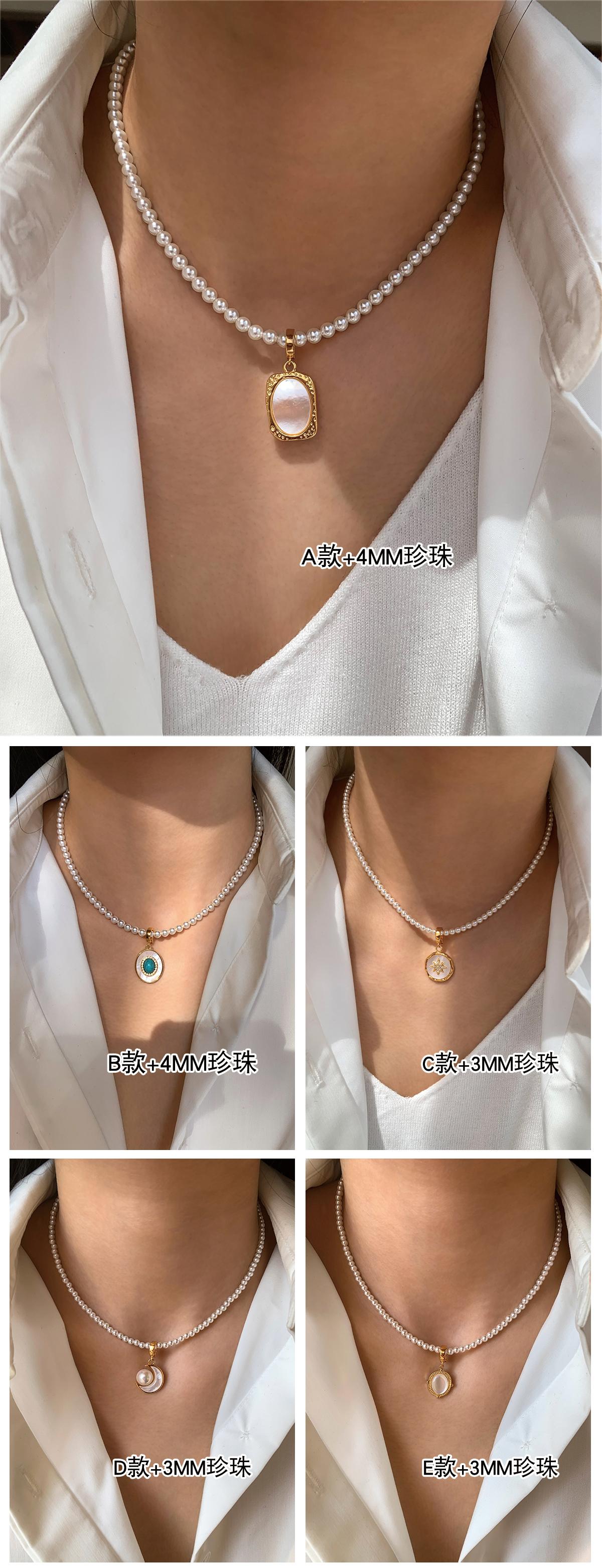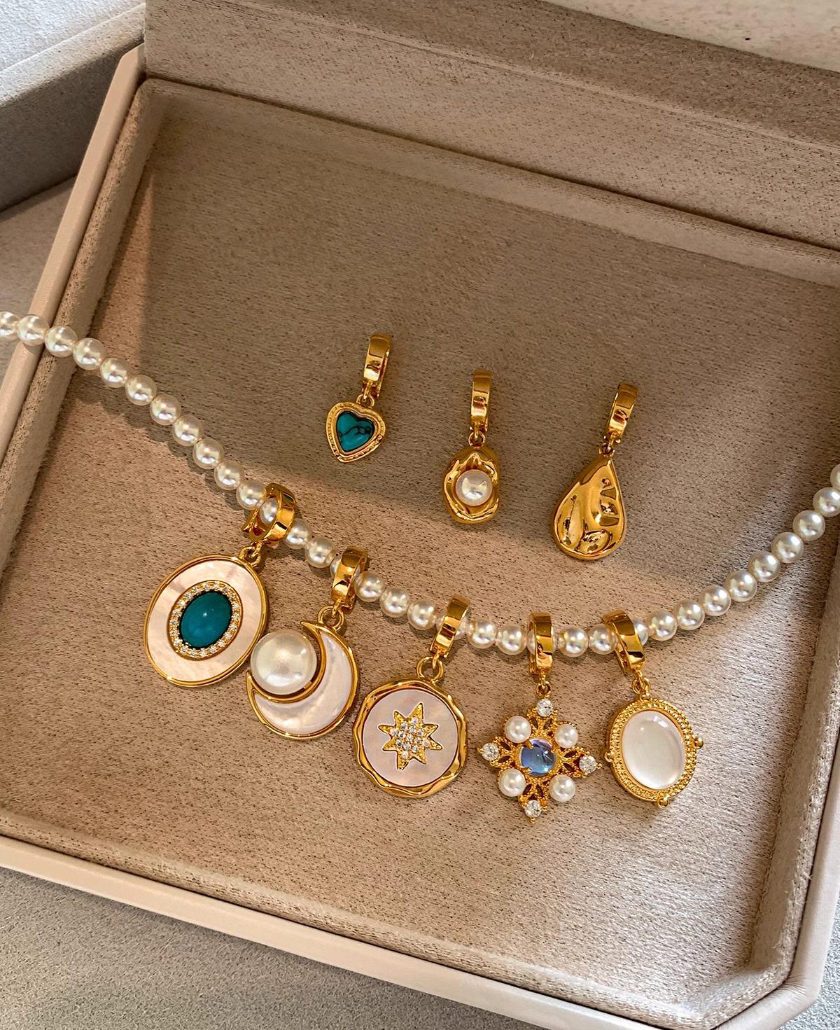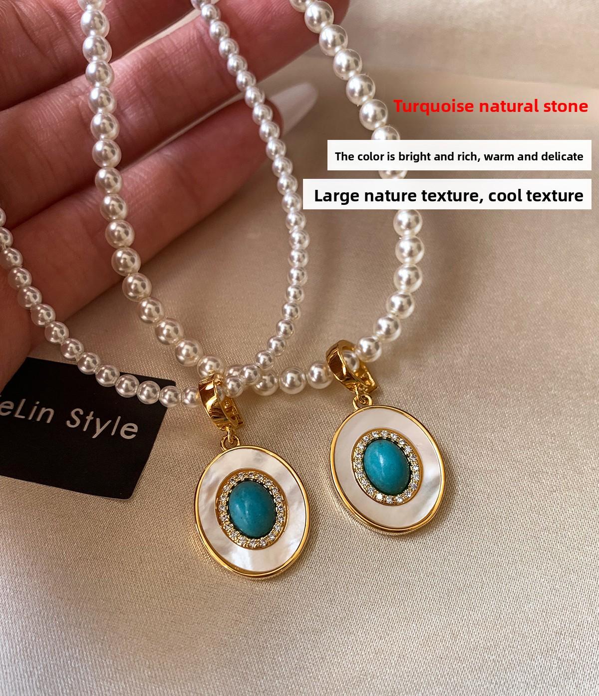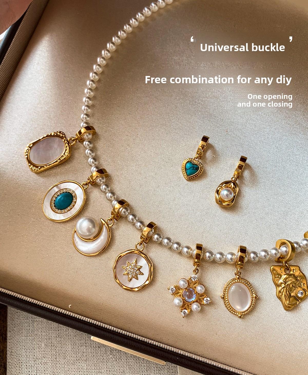 Removable DIY natural fritillary turquoise freshwater pearl, metal necklace, pendant jewelry accessories