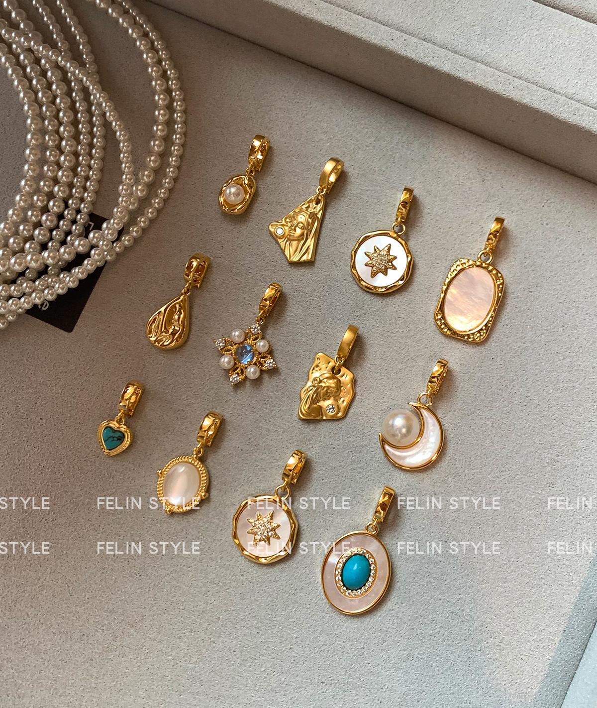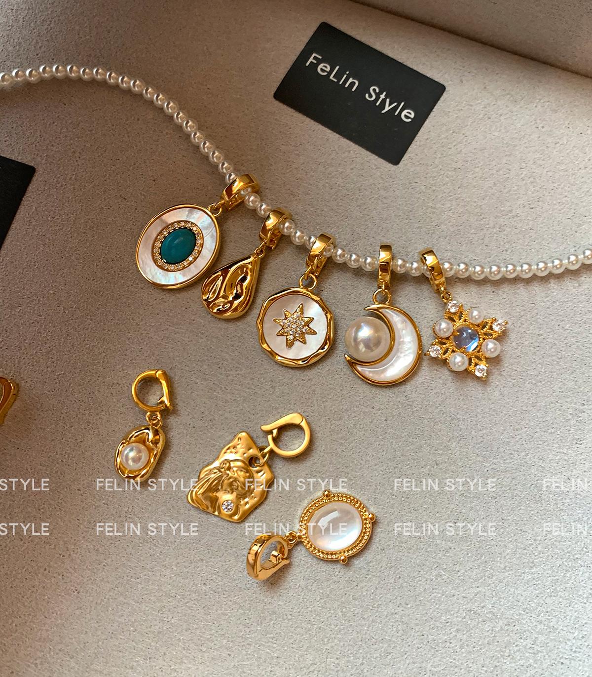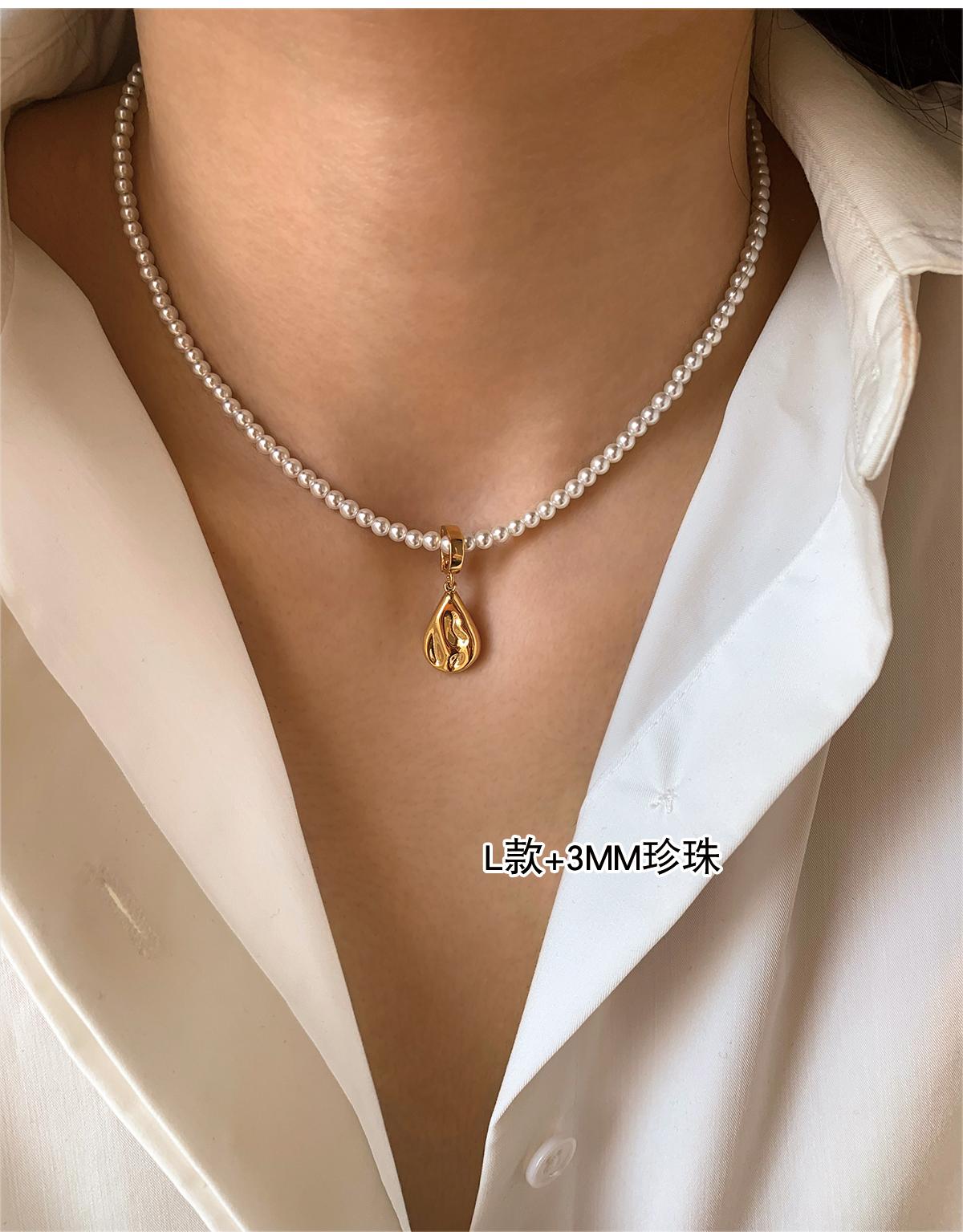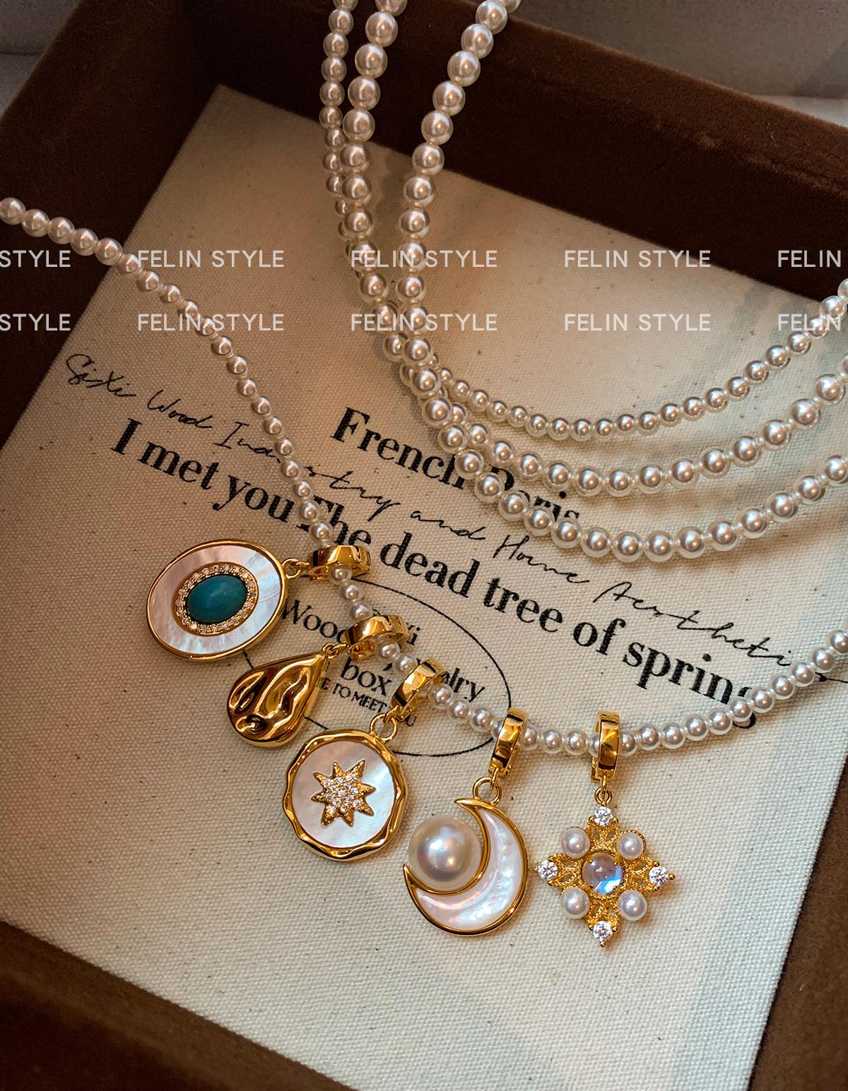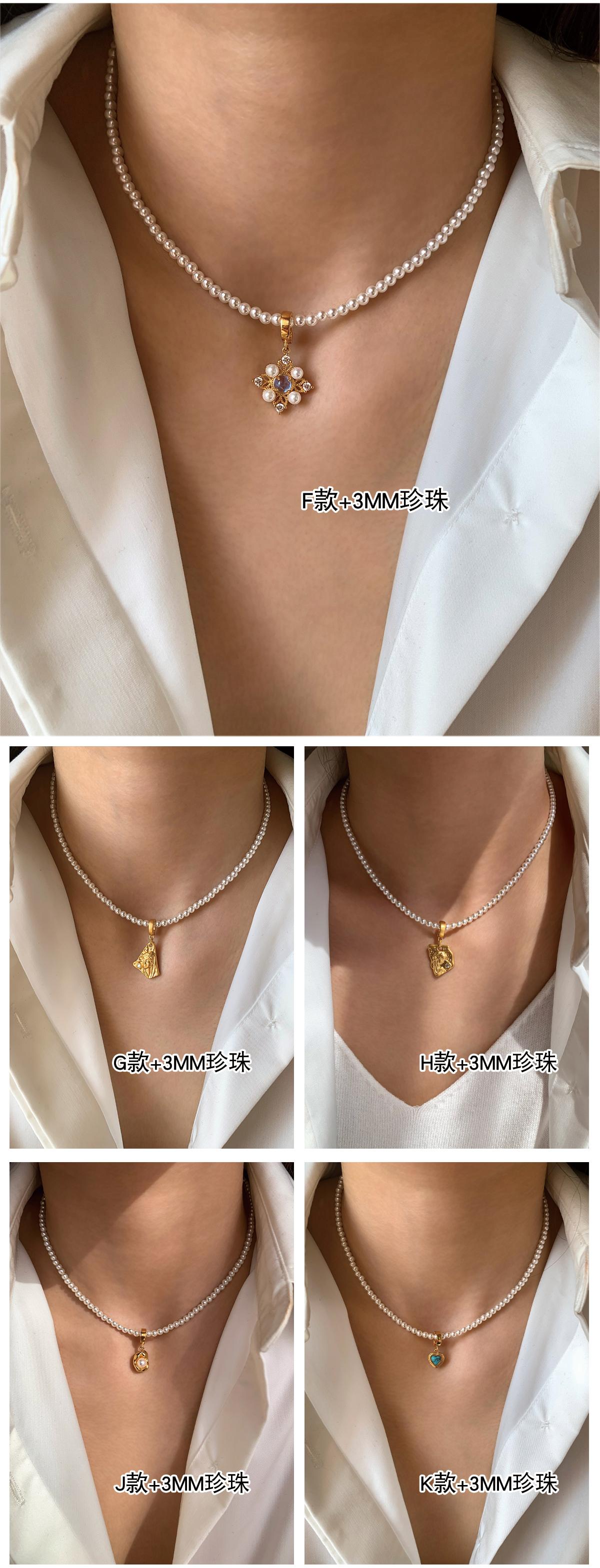 Removable DIY natural fritillary turquoise freshwater pearl, metal necklace, pendant jewelry accessories