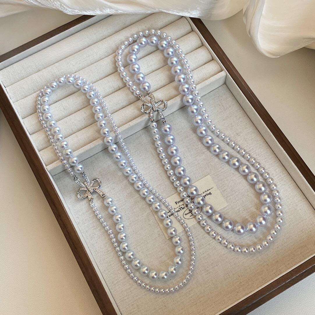 Rose Double Bow Pearl Necklace Mashed Taro Purple High-end Light Luxury Niche Color Sweater Necklace · [Bow Double Layer] 4 + 8mm Taro Purple Manta Rose