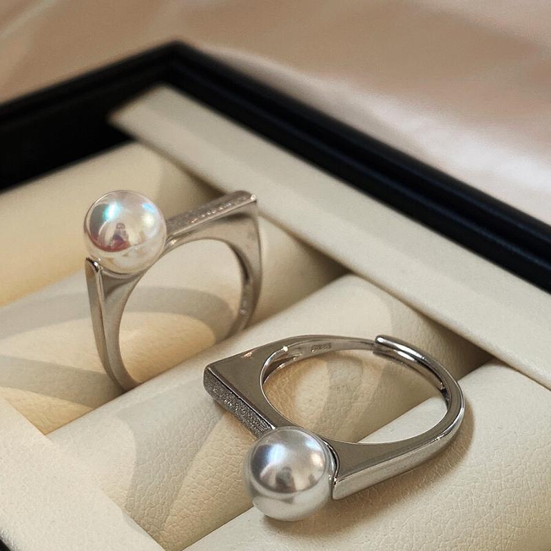 S925 Sterling Silver Frosted Pearl Ring Women's Light Luxury Personality Minimalist Commuter Open Ring · Open Adjustable [Silver] 8mm