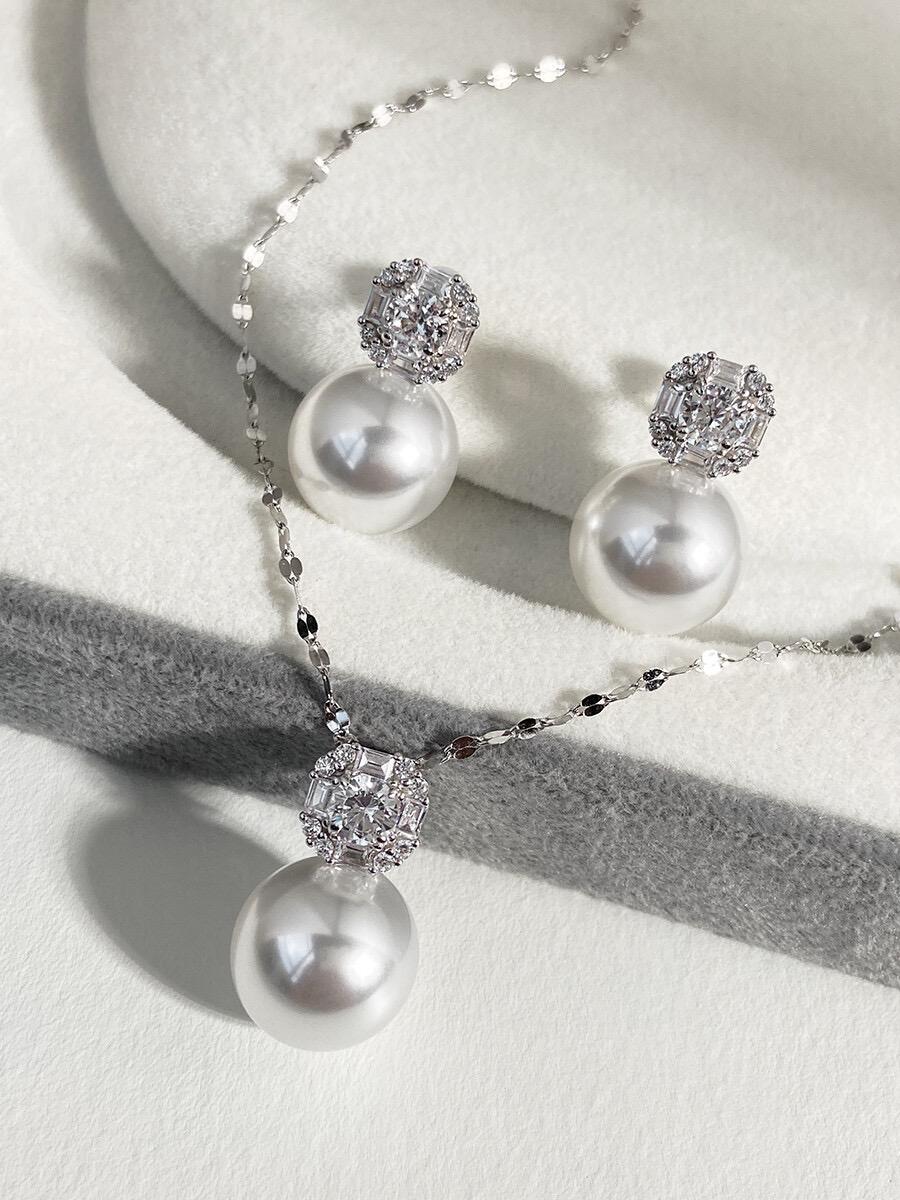Small Sugar Cube Pearl Stud Earrings Premium Sense Silver Needle Super Flash Large Classic Earrings 12mm