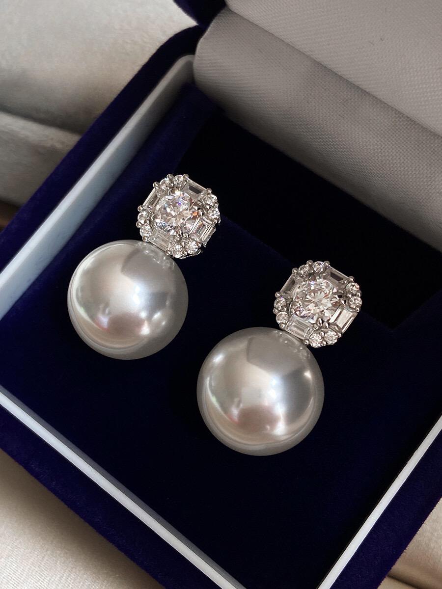 Small Sugar Cube Pearl Stud Earrings Premium Sense Silver Needle Super Flash Large Classic Earrings 12mm