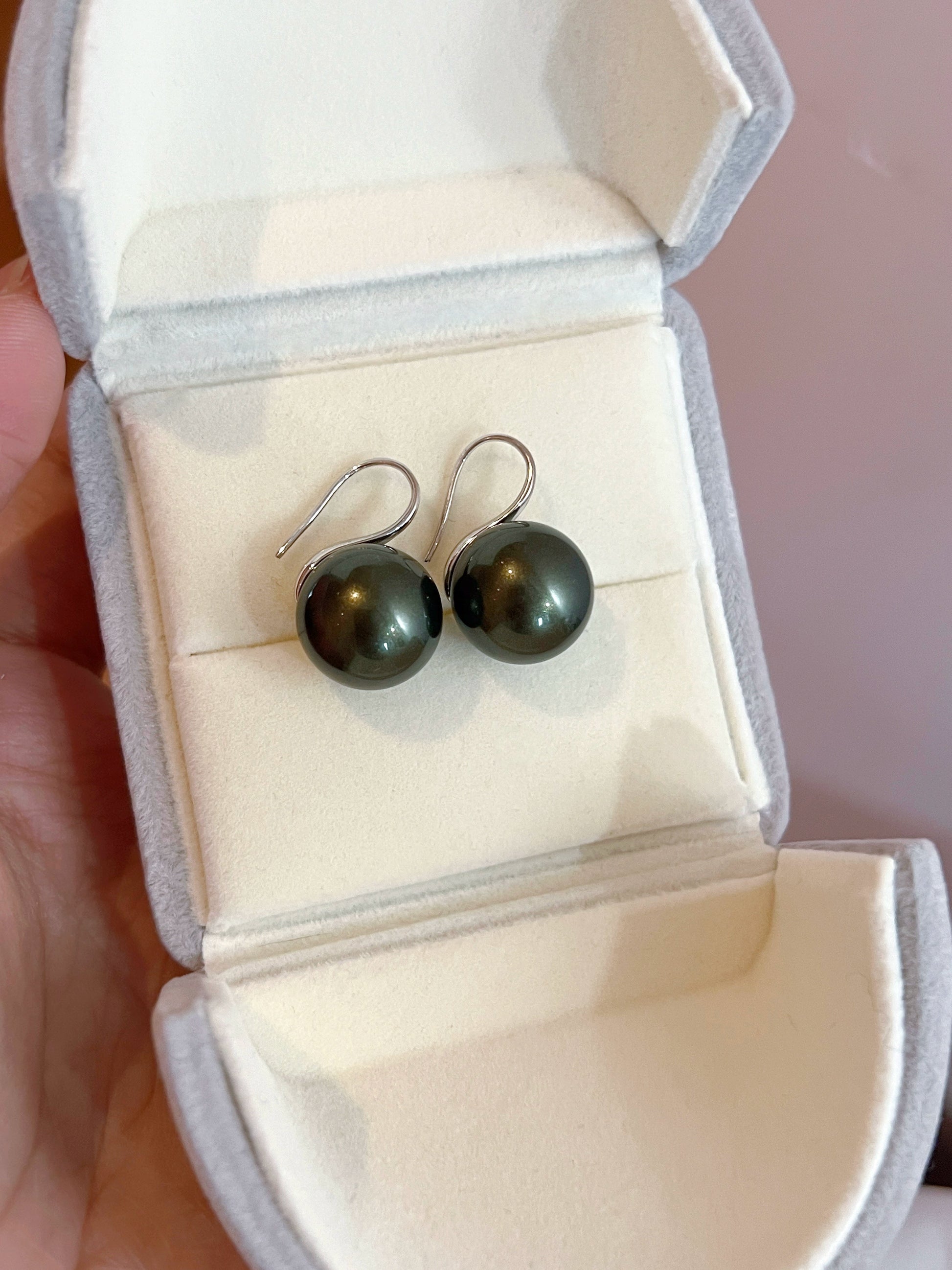 Tahitian Green Peacock Pearl Stud Earrings | 12mm Diamond Retro Design | High Heels Style | Exclusive Super-Flash Ear Hooks for Square Faces